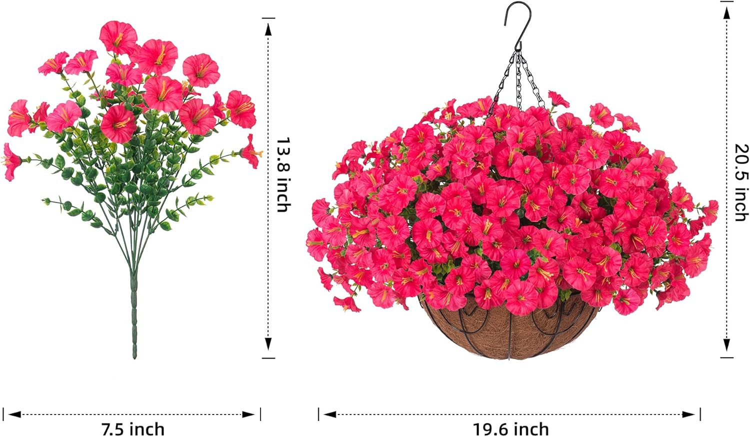 - 🟢 Artificial Hanging Morning Glory Flowers Basket: Package include 12 bundles Realistic silk morning glory match with green eucalyptus leaves, 1 Hanging Basket with chain, 1 foam, 1 green hat. Enjoy vibrant blooms year-round, regardless of the season or weather conditions.