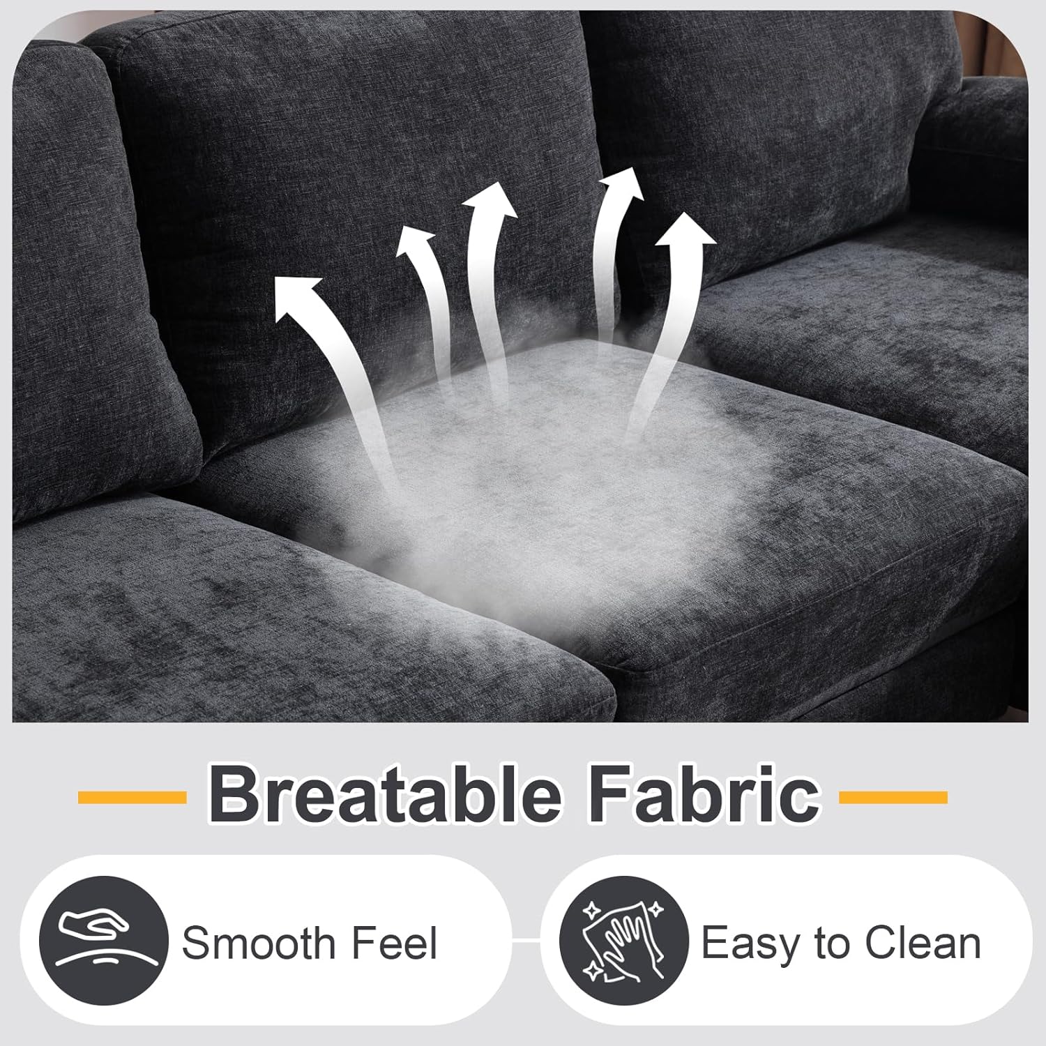 - SOFT & COMFORTABLE - When seated on the couch, you will experience the support of the high-resilience sponge in the seat and back. Occasionally, you can take a nap on the chaise. Covered with breathable fabric, this four-seat sofa offers physical and mental comfort.