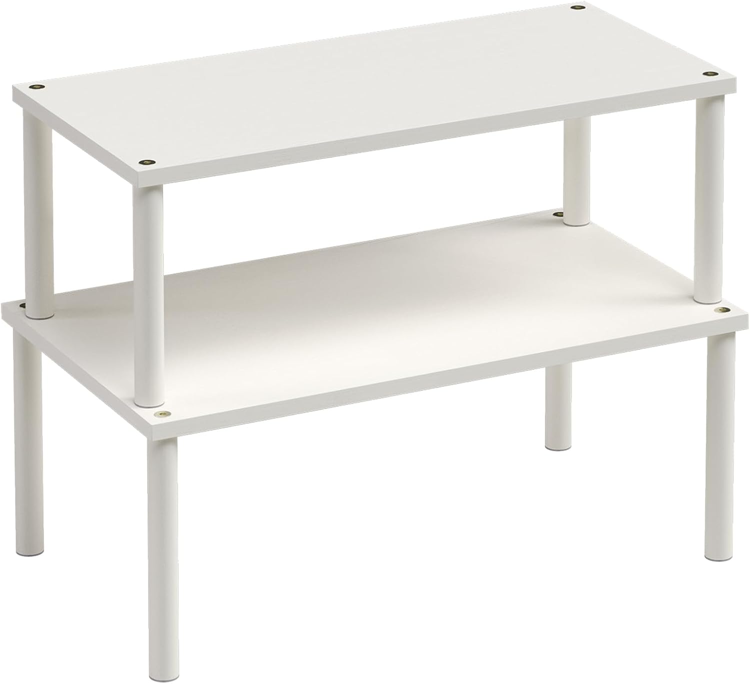 Cabinet Organizer Shelf(Set of 2),Kitchen Counter Shelves,Bamboo Spice Rack Countertop and Cabinet,Stackable Expandable,Large(White)