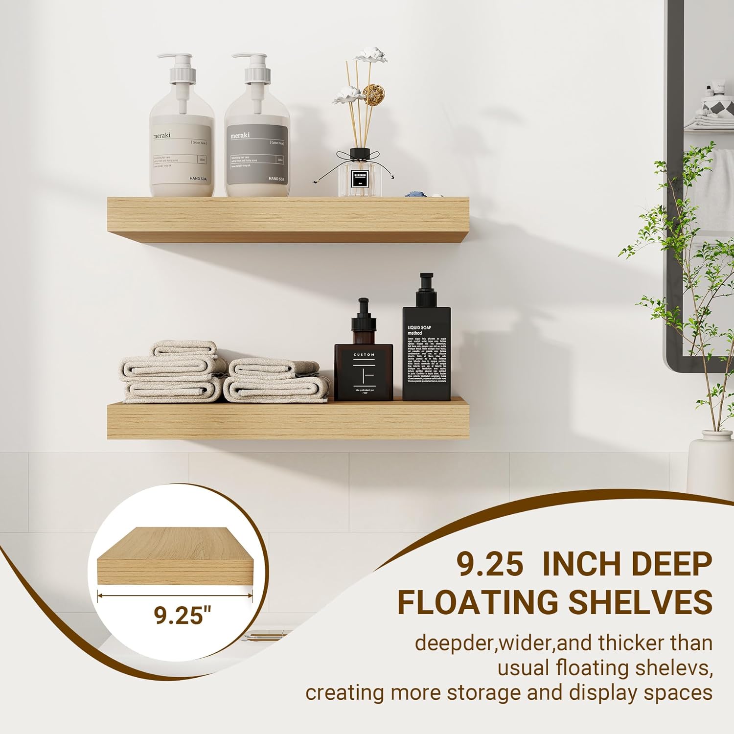 16 Inch Floating Shelves, 3D Textured Wood Grain, 16"x9.25"x1.5" Inch Deep Floating Shelves for Wall, Wooden Shelves for Bathroom, Bedroom, Living Room, Natural