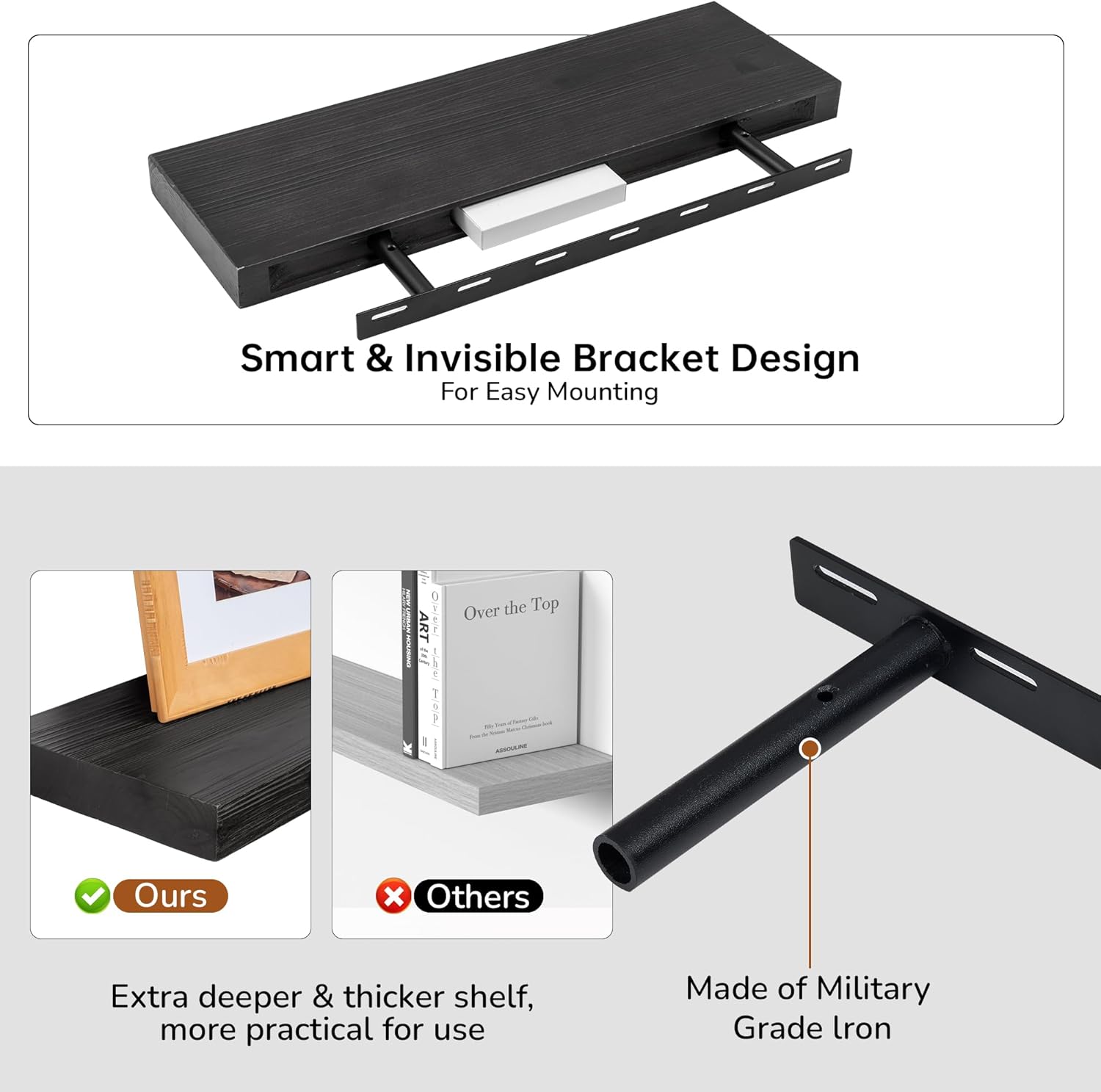 Floating Shelves for Wall, USA-Sourced Fir Wood 24 Inch Wall Shelves Set of 2, Natural Rustic Solid Wooden Floating Shelves Wall Mounted, Nursery Book Storage Shelf, Display Shelf for Bathroom
