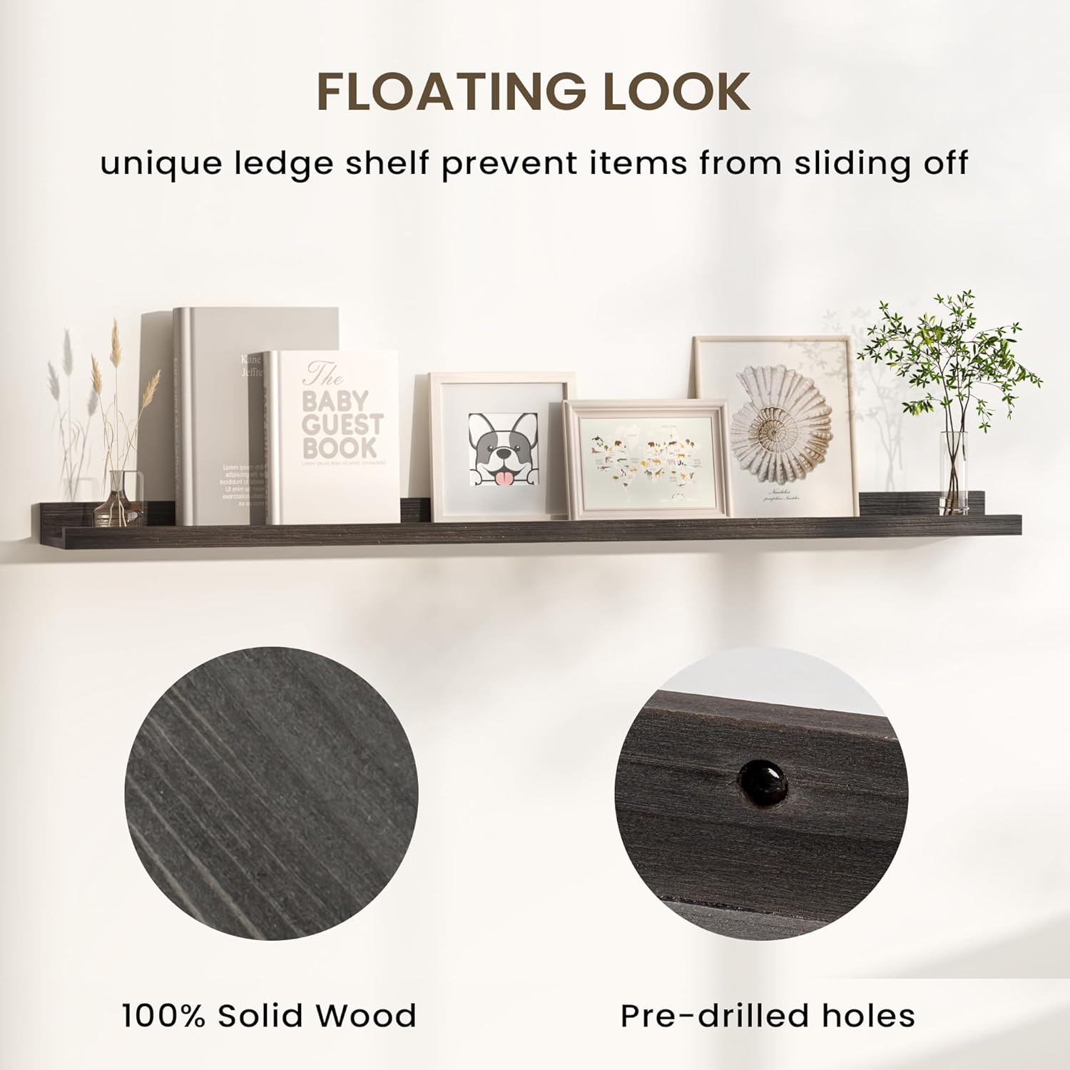 • Quick and Easy Installation: With pre-drilled holes, necessary hardware, and easy-to-follow instructions, our picture ledge shelves are a breeze to install. Each set even comes with a mini level for perfect alignment. Put them up in minutes and start decorating right away!