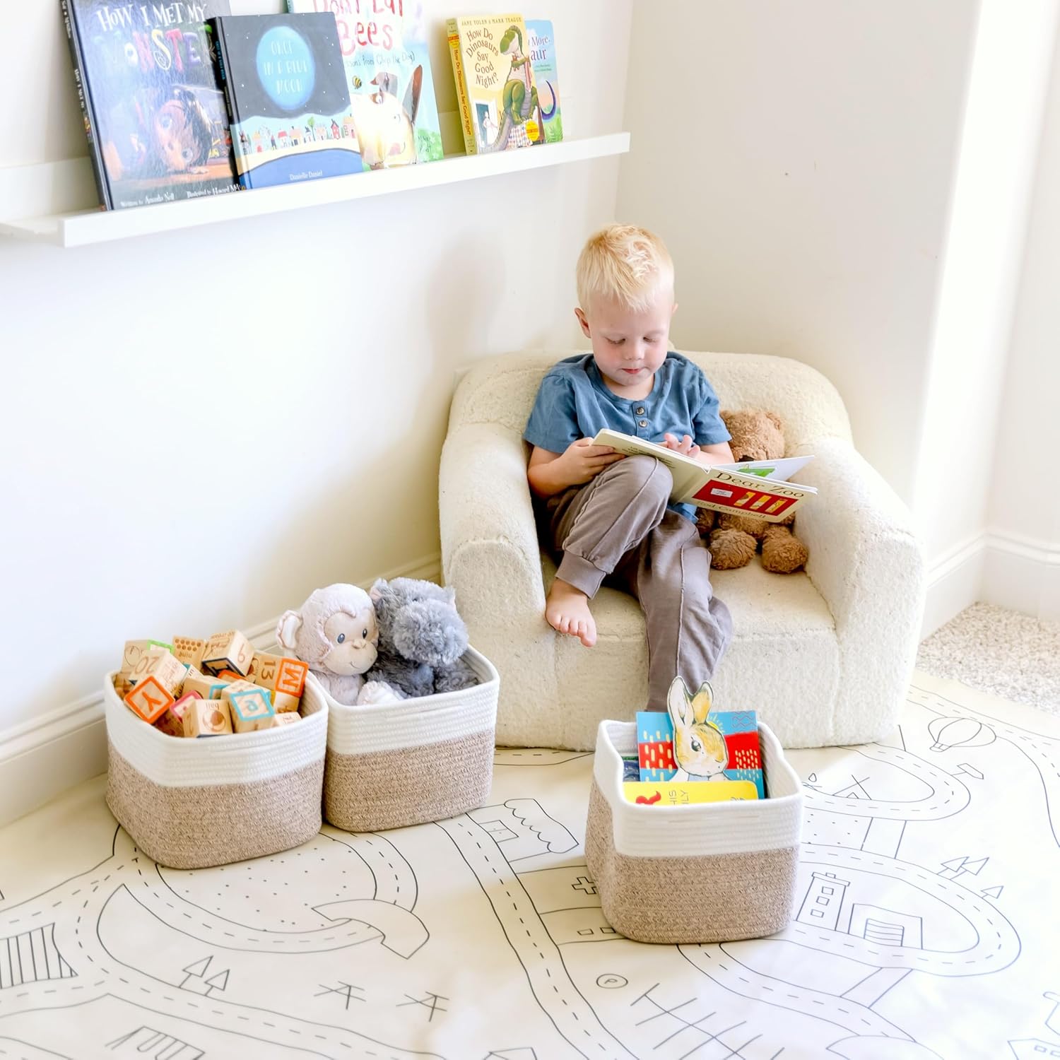 - Safe, Natural Cotton Organizer Bins: Crafted from the highest quality material in the market, our storage bins are oh-so-sturdy (and cute) and ready to take on little humans. They’re 100% safe, so you can rest easy if teething toddlers take a nibble.