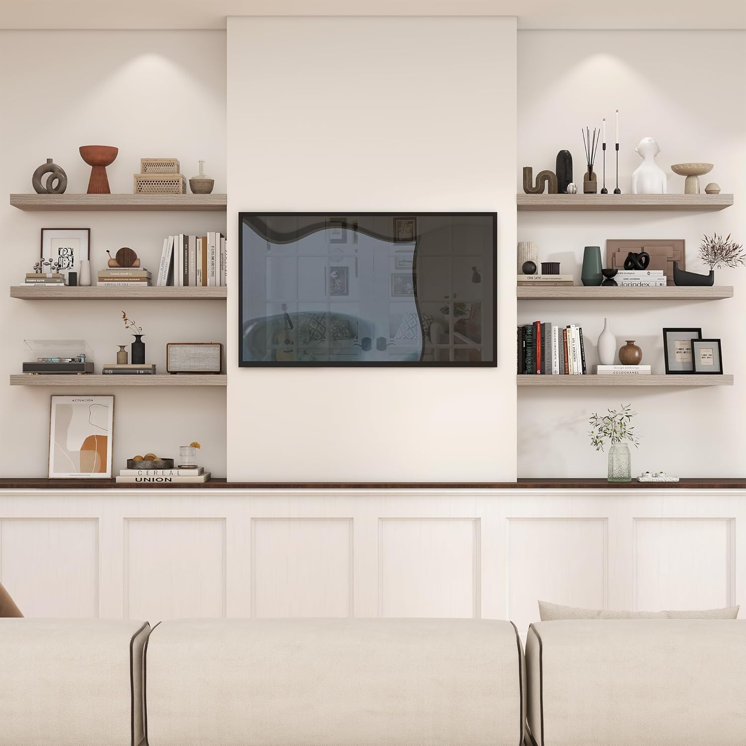 Heimlove 36 Inch Floating Shelves for Wall,10 Inch Deep Grey Wood Shelves with Invisible Brackets,Wall Mounted Storage & Display Shelves for Bedroom,Living Room,Kitchen,Office