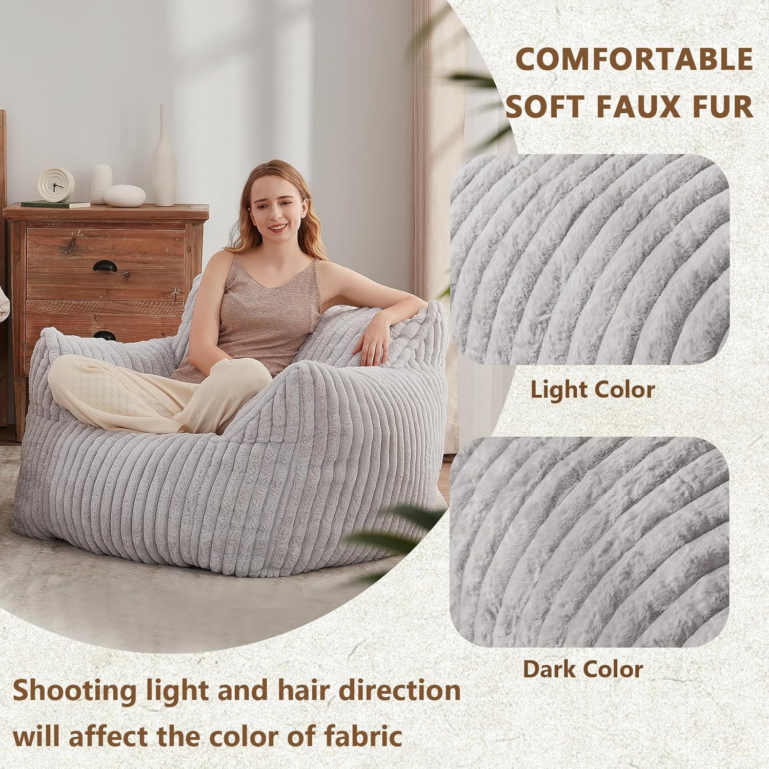 Giant Bean Bag Chairs for Adults Teens, Large Bean Bag Sofa Chairs with Filling Comfy Fuzzy BeanBag Chair with Armrests for Bedroom Living Room Reading (Light Gray, Large)