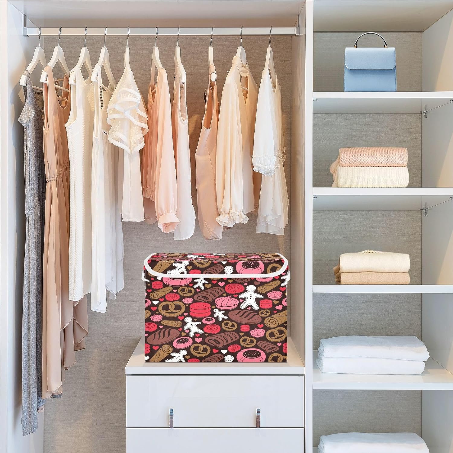 susiyo Holiday Candy Seamless fabric storage baskets with lids,Collapsible Storage Boxes,Foldable storage boxes with handles for Home,Office,Closet Organization