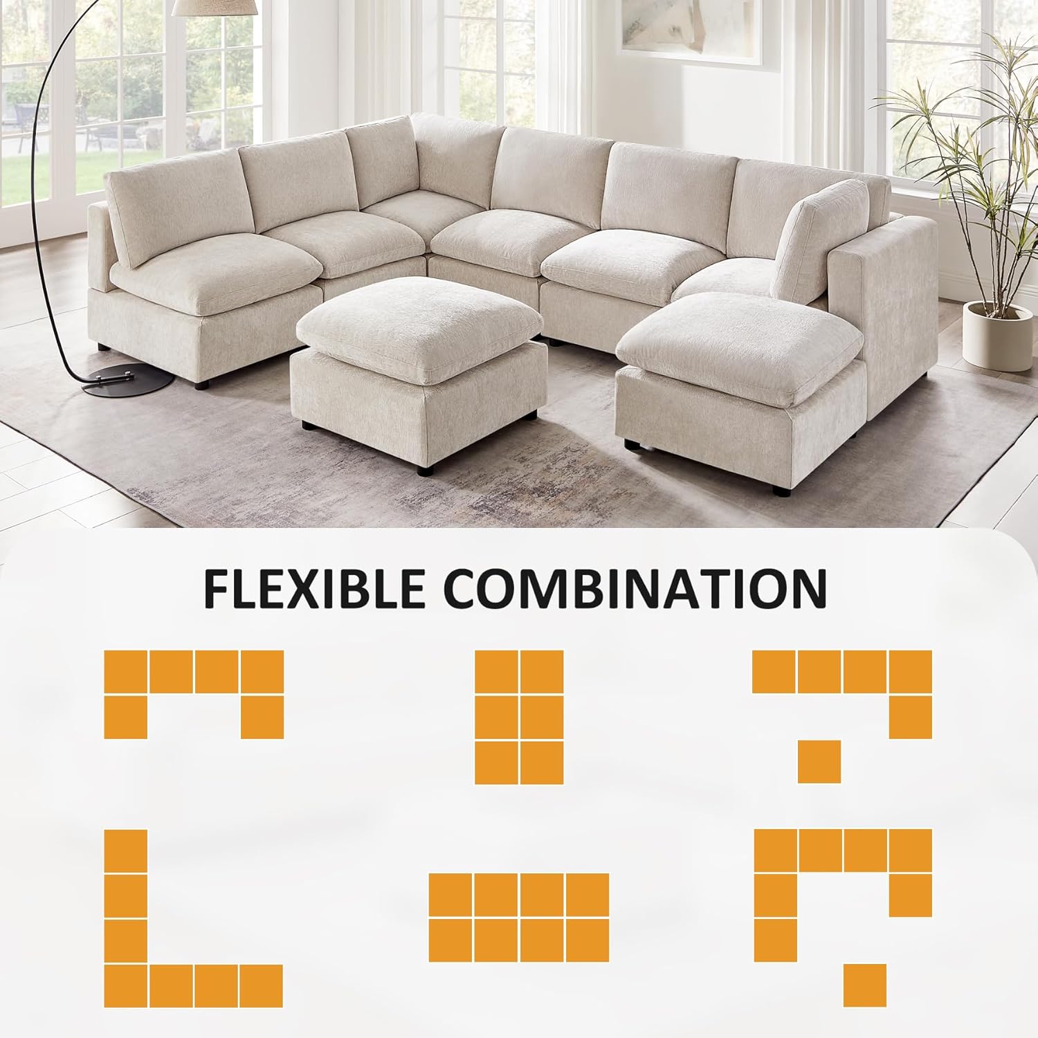 - Customizable Seating - Add or remove middle modules or ottoman modules to adjust seating capacity. Perfect for both spacious living rooms and compact spaces