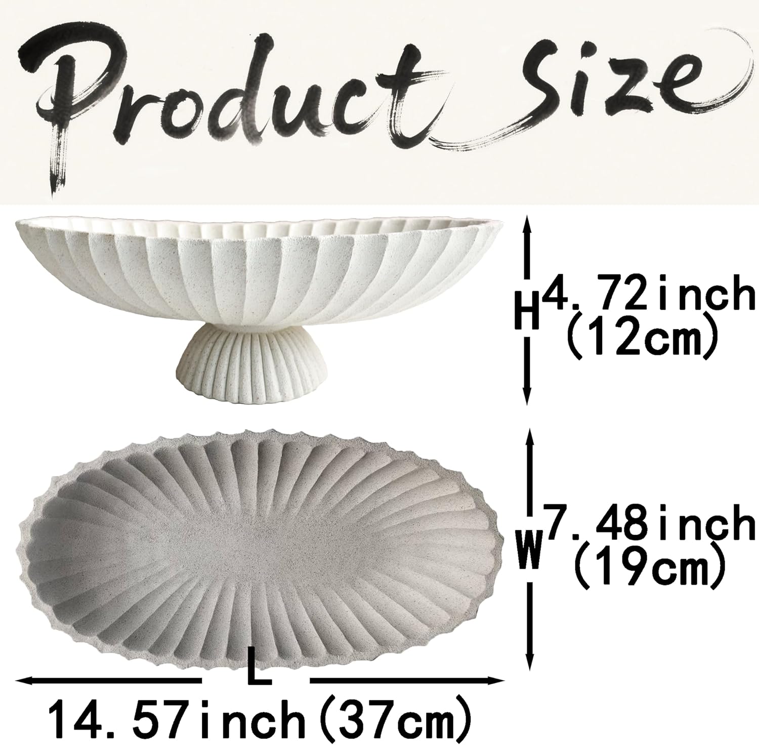 14.5" Large Decorative Long Bowl - Light Gray Fluted Scalloped Decorative Bowls for Home Decor - Ruffle Decor,Stylish Key Bowl for Entry Table,Decorative Fruit Bowl for Kitchen Counter