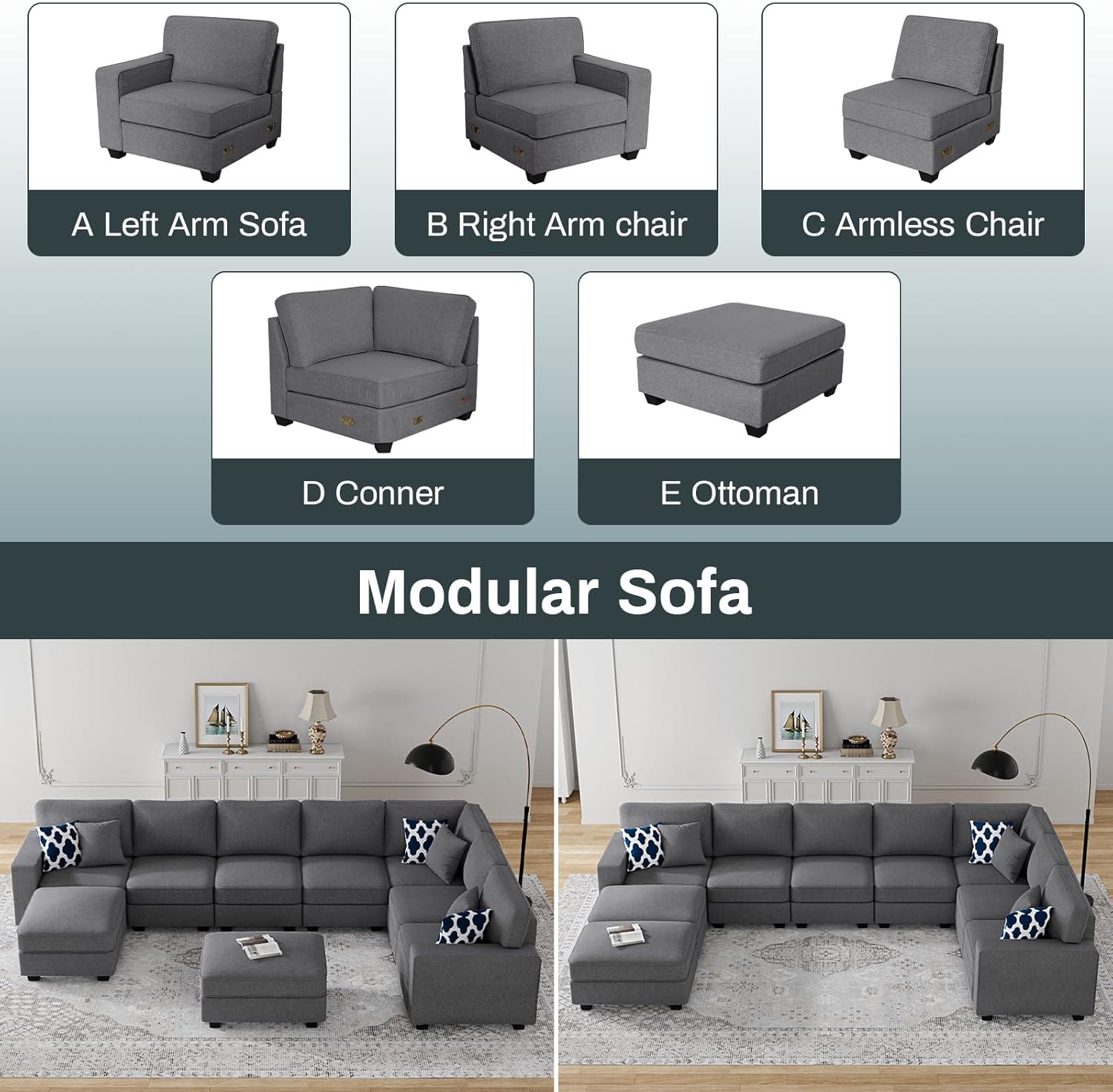 - ăFlexible CombinationăThe u shaped couch can rearrange the seats, you can adjust it as you like to create various shapes and layouts, whether it's combined into an L shaped sofa or a U shaped sofa, this sofa couch can fit your space perfectly. This flexibility not only brings more choices, but also saves your budget, by adding additional modules, you can easily expand the capacity and functionality of the sofa without having to replace the modular sofa completely.