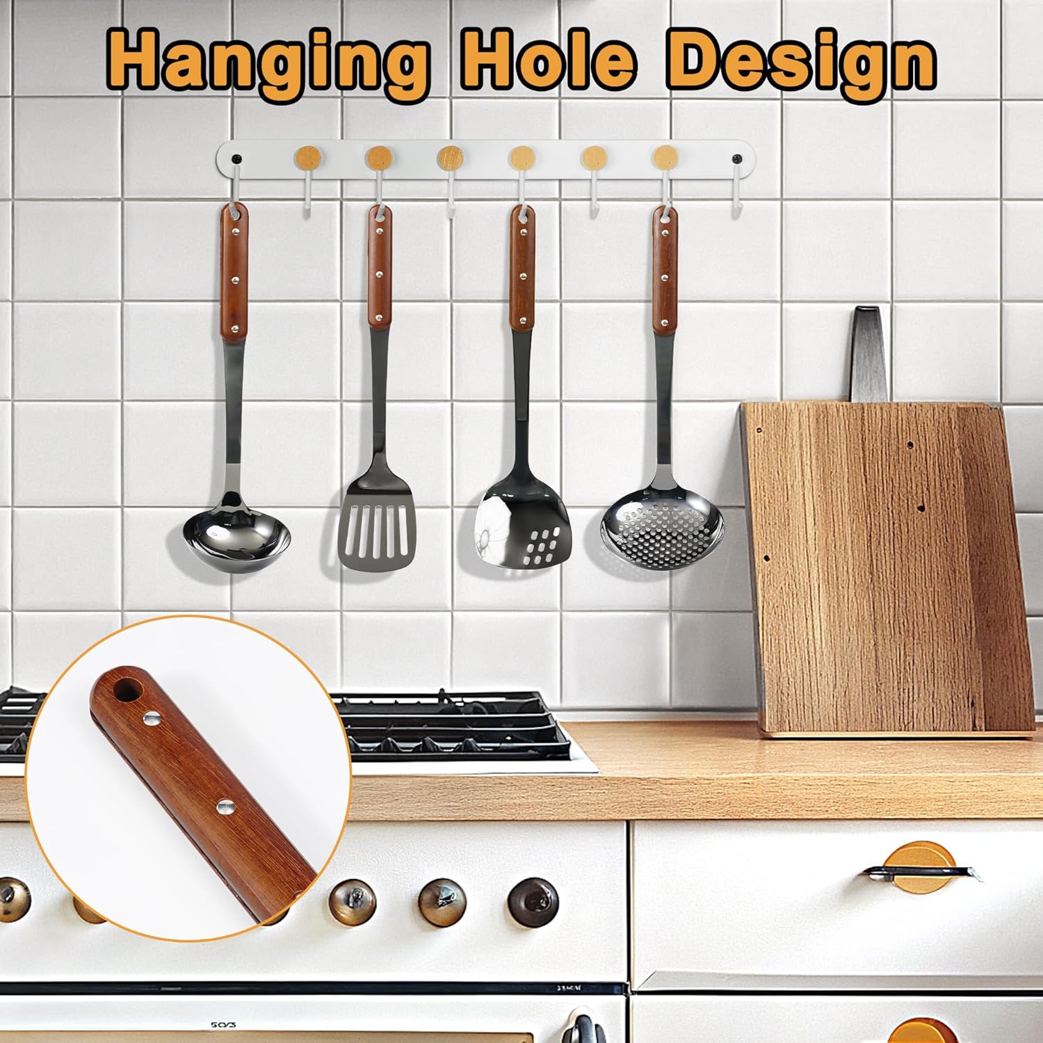 - Easy to Clean Wok Accessories: 304 stainless steel will not leave food grease ; round hanging hole also makes it easy to dry and hang