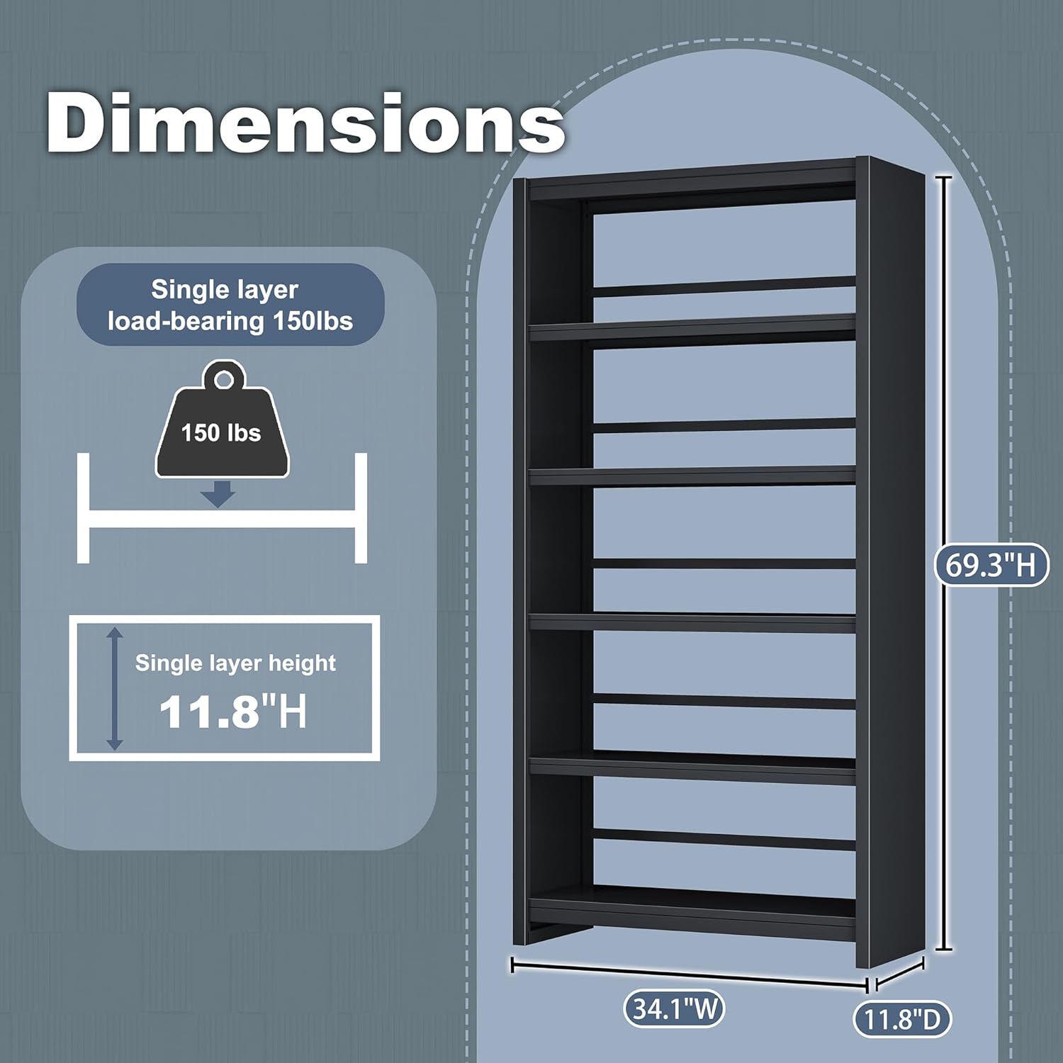 - ăLarge BookshelfăThis is 69"H*34"W*11.8"D book shelf. The bookshelf with large storage space can meet your usage needs. The display shelf is suitable for placing books, vinyl records, albums, collectibles, turntables, and figurines.