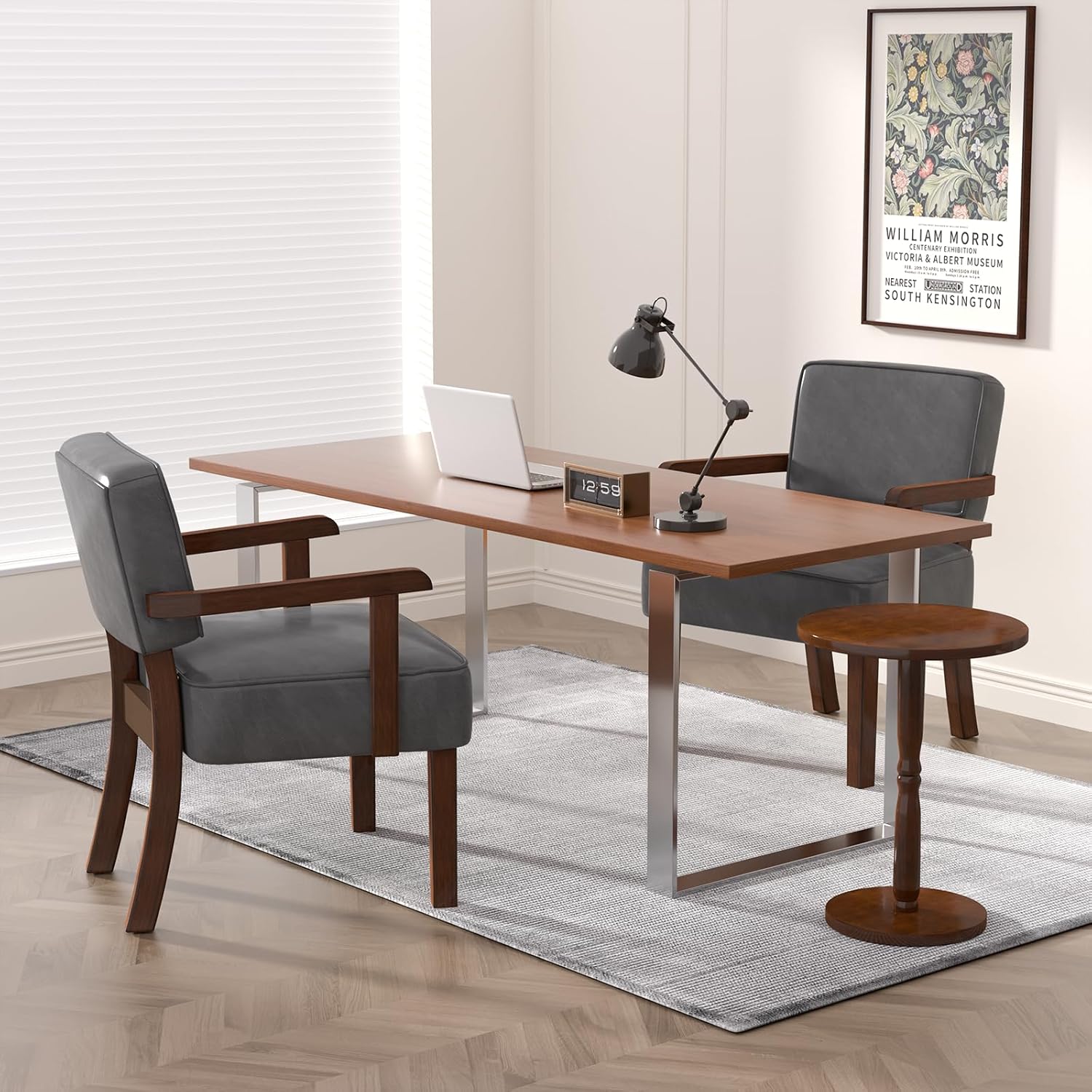 Accent Chair, PU Leather Oversized Living Room Chairs with Soft Seat and Armrests, Armchair for Bedroom, Dinning, Reading and Waiting Rooms (Leather Gray)