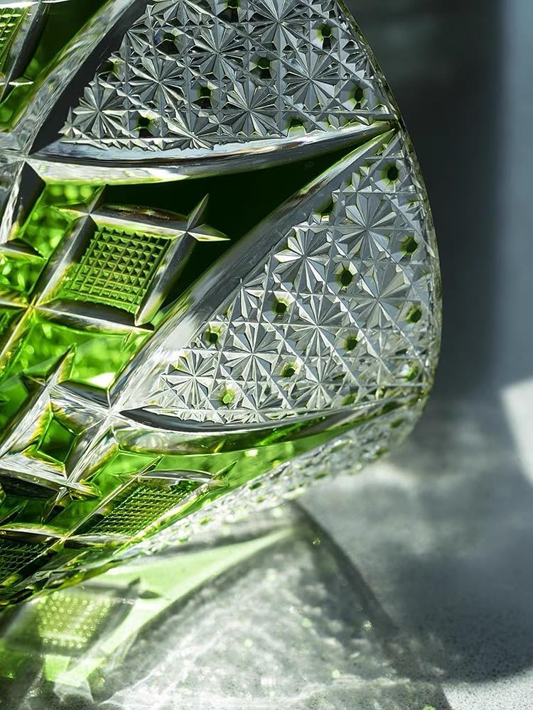 JEKE Edo style Hand Carved Drinking Glass Crystal Whisky Glass 340ml Tumbler For Whiskey Cocktail-Vodka-Beer Drinkingware Glasses In Gift Carton (Green)