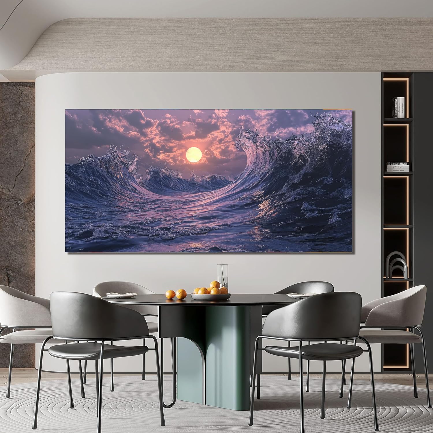Canvas Wall Art for Living Room Artwork for Walls Canvas Modern Art Wall Decor Nature Landscap Wall Art Decor Purple Coastal Beach Wall Art Prints Art Work for Home Office Kitchen Wall Decor 24" X 48"
