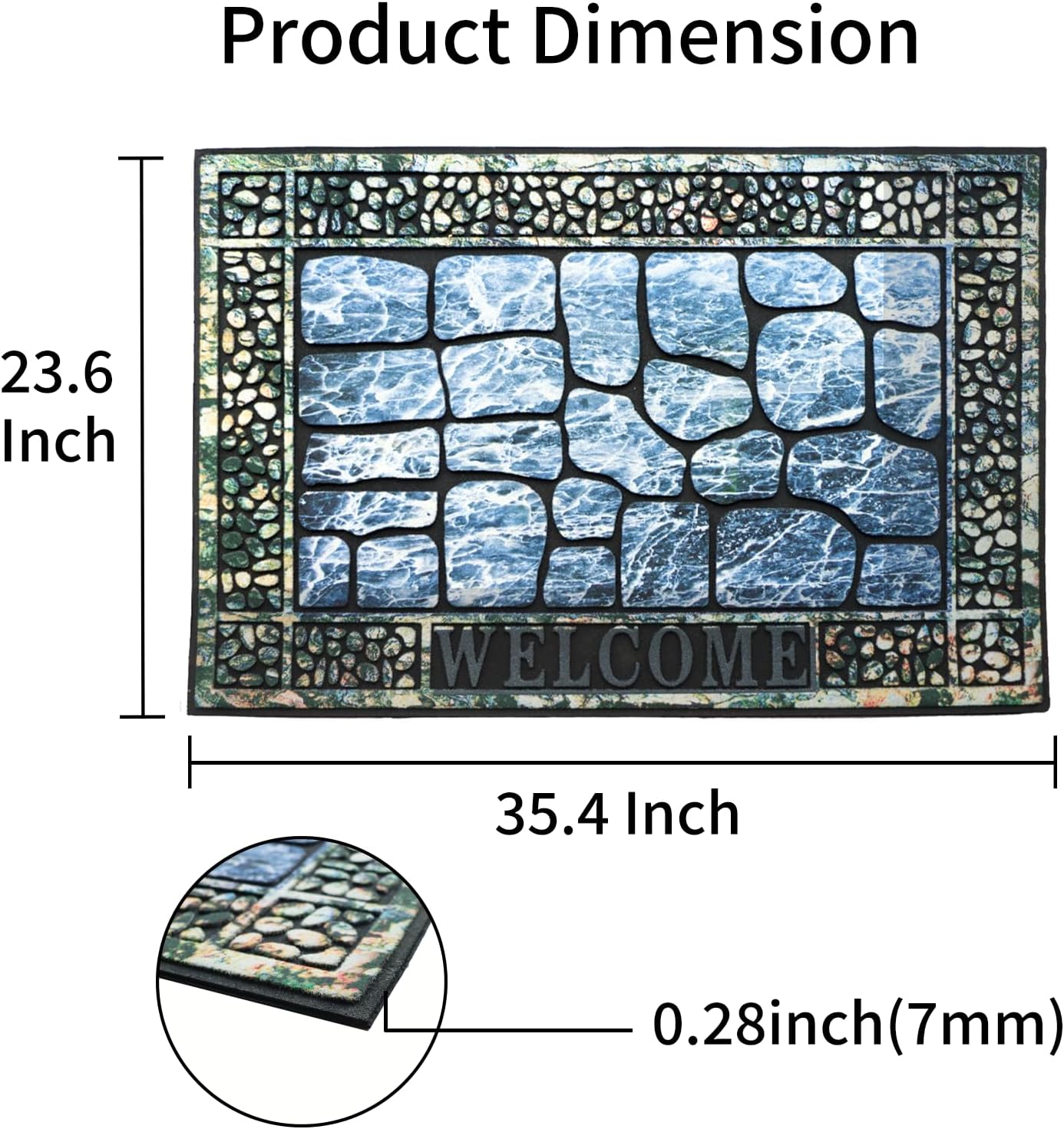 - 【Heavy Duty Door Mat】The door mat for outside measures 23.6 x 35.4 inches with a thickness of 0.28 inches. Made from quality and durable rubber, it ensures long-lasting durability and performs well in all weather conditions, making it suitable for year-round outdoor use.
