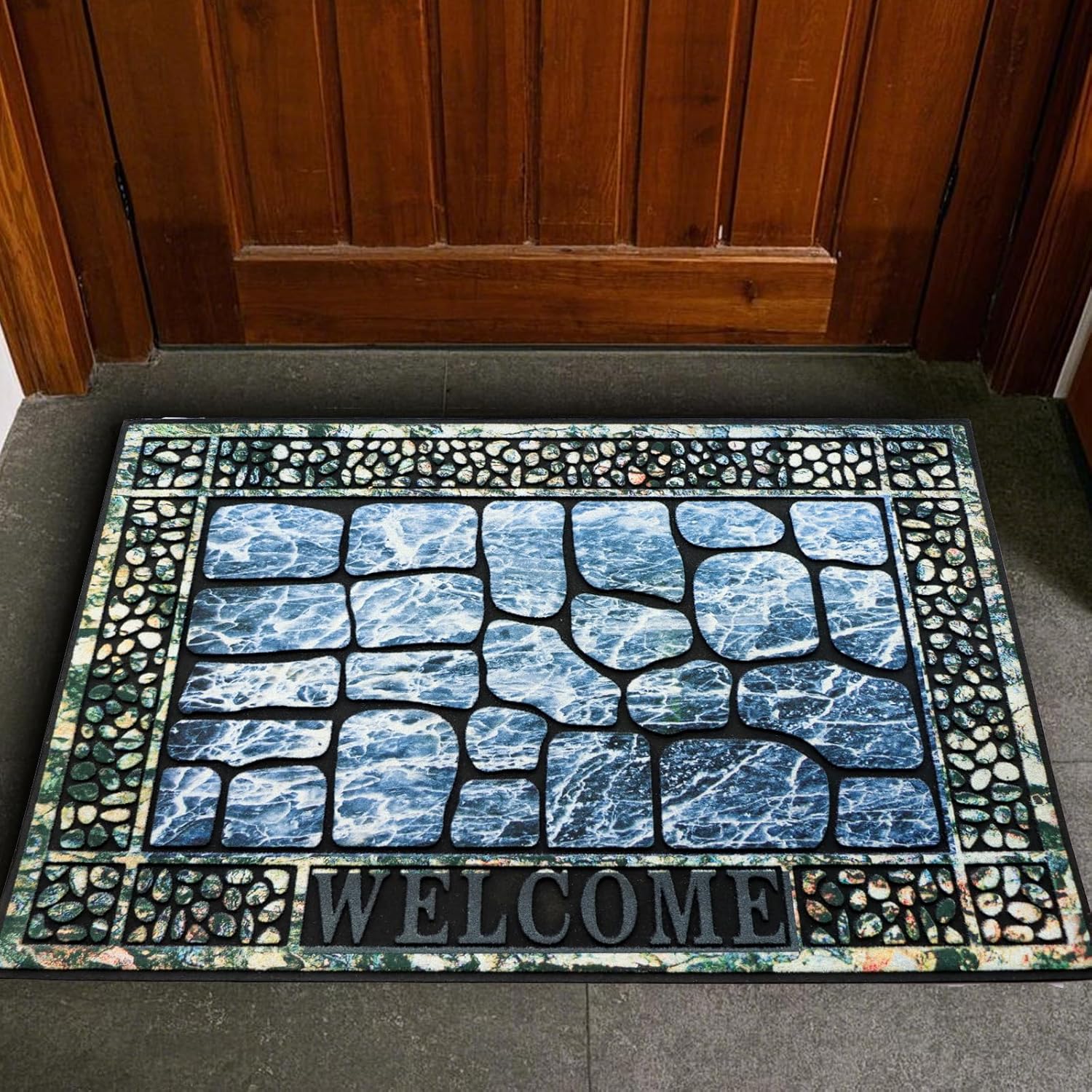 Door Mat Welcome Mat, Heavy Duty Door Mat 23.6 x 35.4 Inch Front Door Mat Rug Doormat for Outdoor Entrance Home Non-Slip Rubber Rug for Front Door, Outside, Entryway, Patio (Blue Welcome)