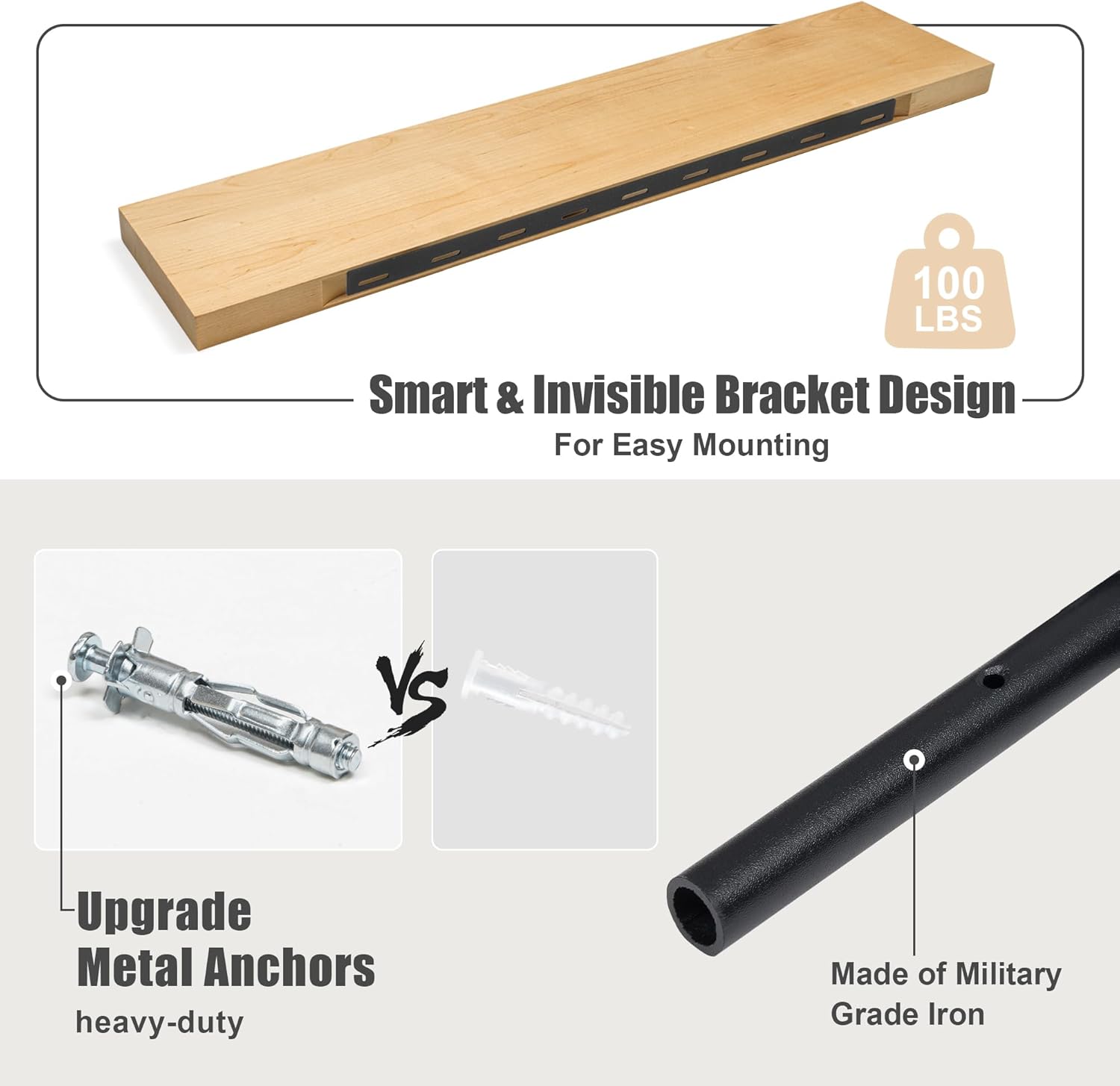 - Sturdy & Functional: Equipped with heavy-duty metal brackets, each shelf supports up to 100 lbs. The flat surface and stable construction make them suitable for any room while showcasing the natural beauty of the wood grain.