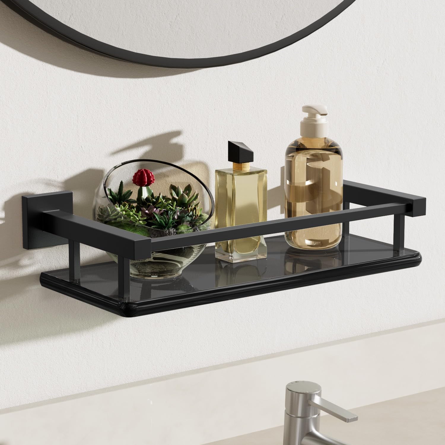Alise Glass Shelves for Bathroom Wall, Tempered Glass Bathroom Shelf Wall Mounted, Modern Space Saving Floating Shelves 12 inch, Matte Black