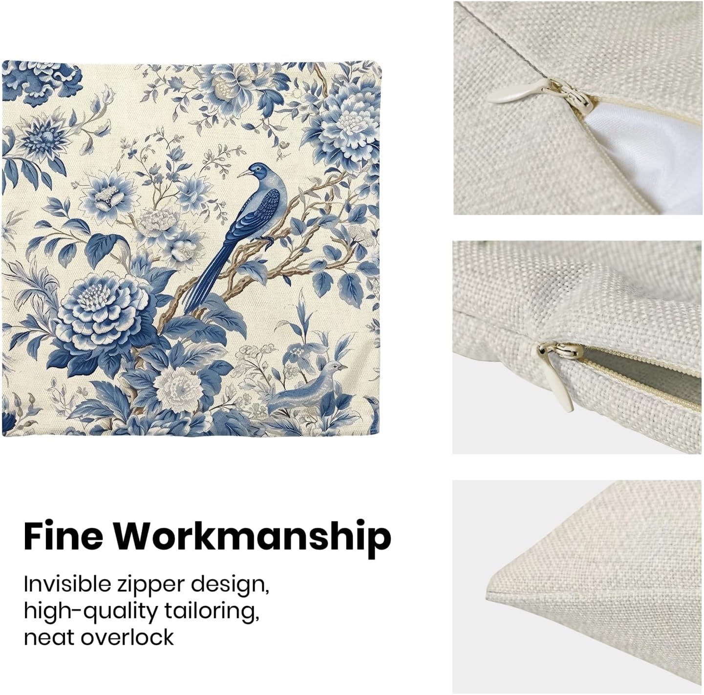 - 【Square Pillow Covers Size】 Chinoiserie flower birds pillow case set includes 2 pcs of farmhouse couch pillow covers (NO Pillow). Home decor farmhouse pillow covers measures 16x16 inch/ 40x40 cm. All the floral decor throw pillow covers have a hidden zipper. It is easy to insert or remove the pillow core to replace the spring pillowcase. Easy to clean and wash, sturdy and not easy to damage.