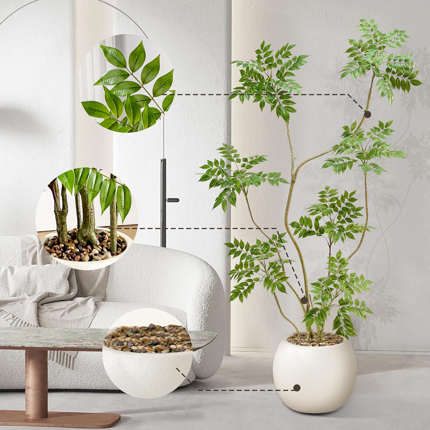 Artificial Mahonia Fortunei Tree 6ft,Tall Fake Plant Artificial Sumac Tree, Faux Plants Indoor Fake Plants Decor with Pots for Home Office Bathroom Bedroom Living Room Decorations Housewarming