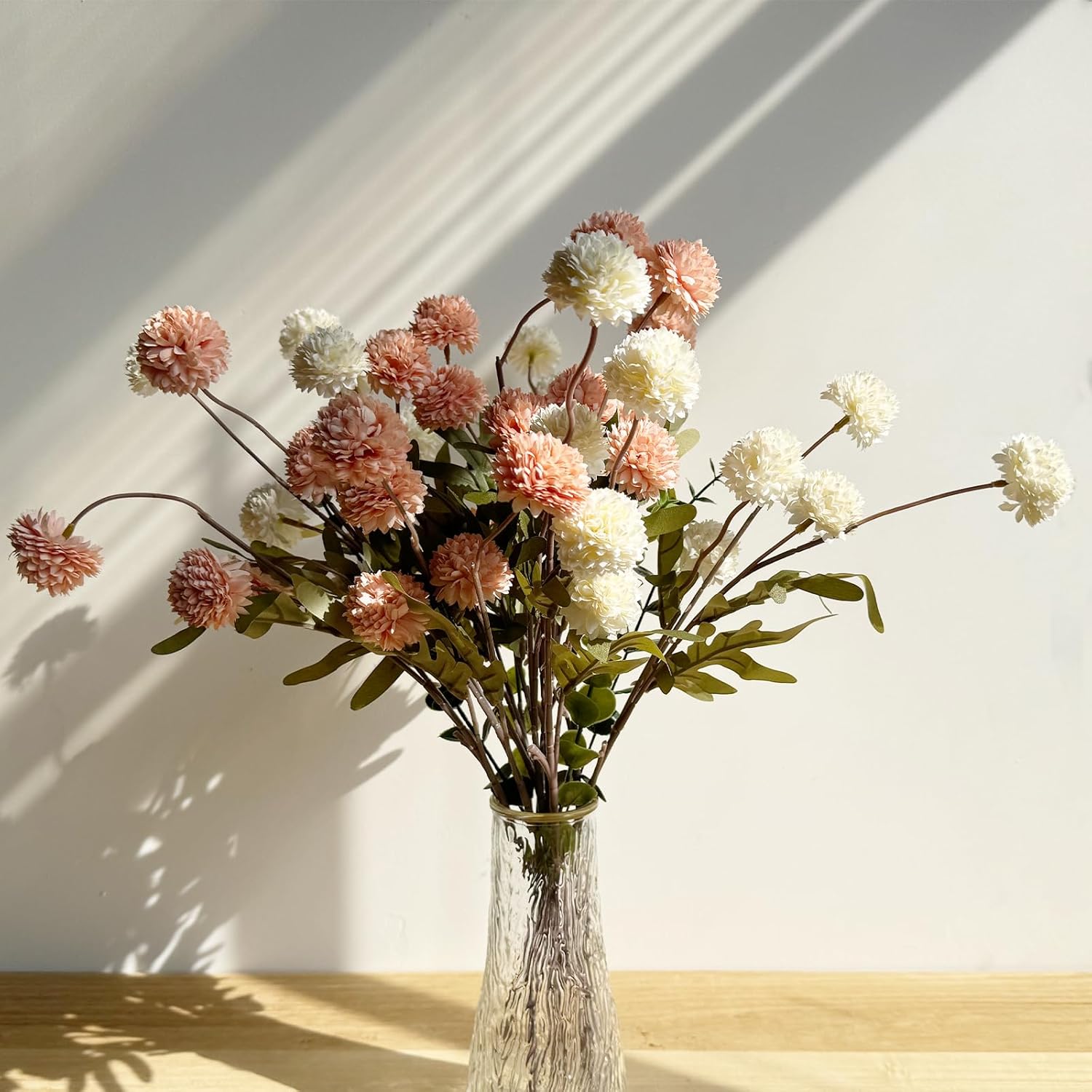 - Long-Stem Artificial Flowers for Versatile Arrangements: Designed for tall vases or terracotta vessels, these long-stem artificial flowers are perfect as filler flowers or paired with other floral stems for unique arrangements. Whether you're aiming for a boho-style arrangement or a farmhouse-inspired look, these artificial eucalyptus stems and kiku flowers in bulk provide endless creative possibilities for your centerpiece designs