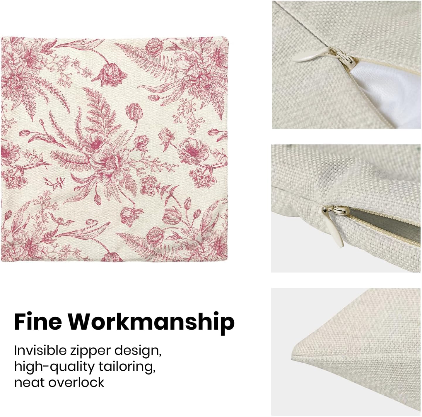 - 【Spring Pillow Covers】 Our Chinoiserie floral throw pillow covers 20x20 inch are made of excellent breathable polyester cotton fabric. The pink and White floral decorative pillow covers is sturdy, soft and skin-friendly. The plant outdoor pillow covers adopt exquisite edging technology and four sides of our floral pillow covers are sewn firmly, which is not easy to open the line.