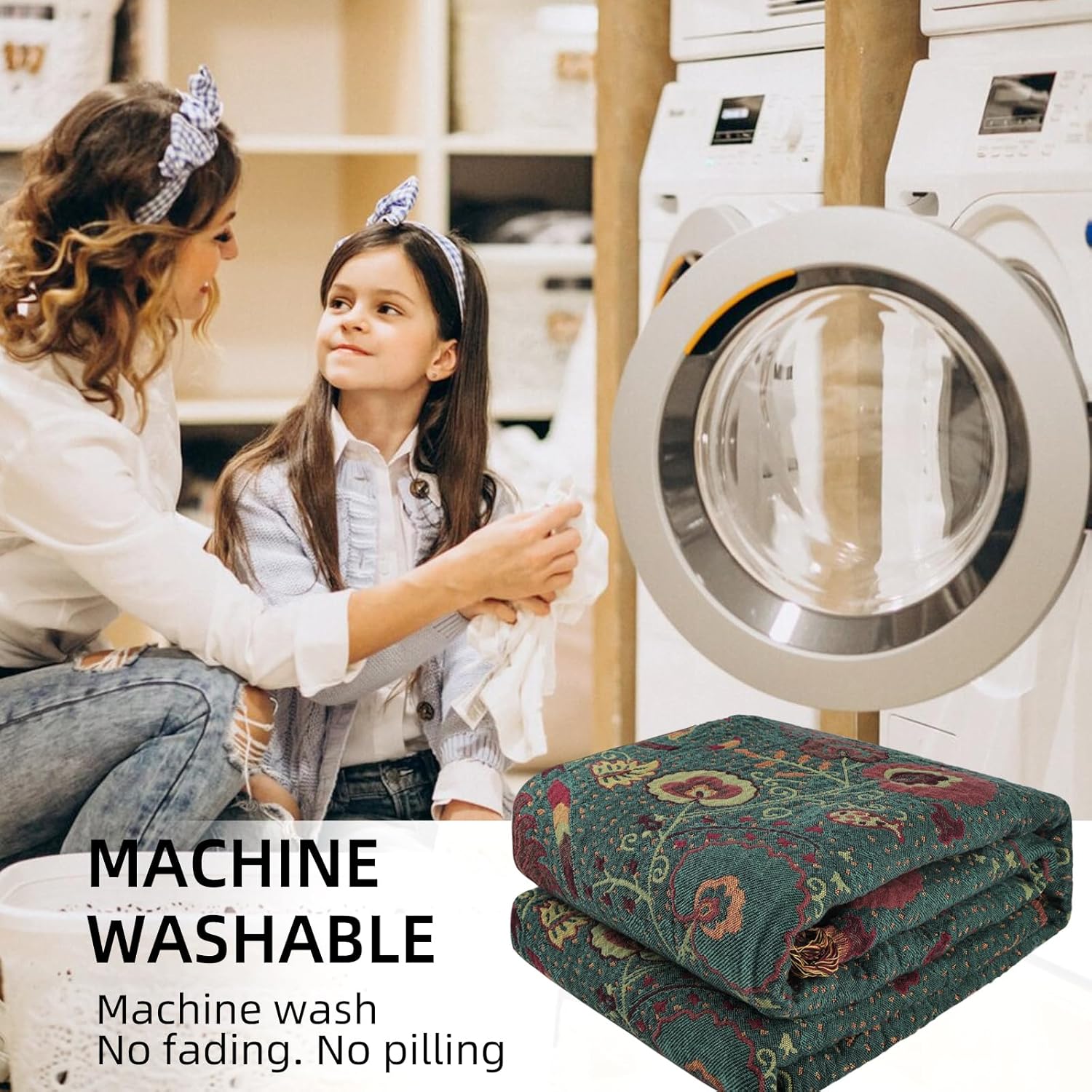 Boho Throw Blanket for Bed - 100% Pure Cotton Ultra Soft Rustic Quilt - Farmhouse Decor Bed Blankets, All Season Rustic Throw for Sofa Couch Chair(91''x 98'', Floral)