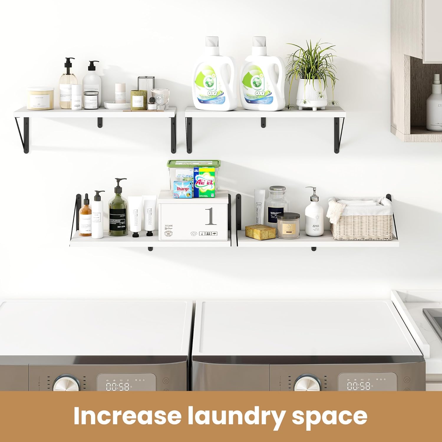 - ăSturdy and DurableăThe wall-mounted shelves are sturdy enough,with a load-bearing metal frame added in the middle,which will not deform and can withstand a weight of 30 pounds. It is very suitable for use as a wide bookshelf,TV stand,for home office,laundry room. Follow the instruction steps,including all necessary hardware,easy to assemble.