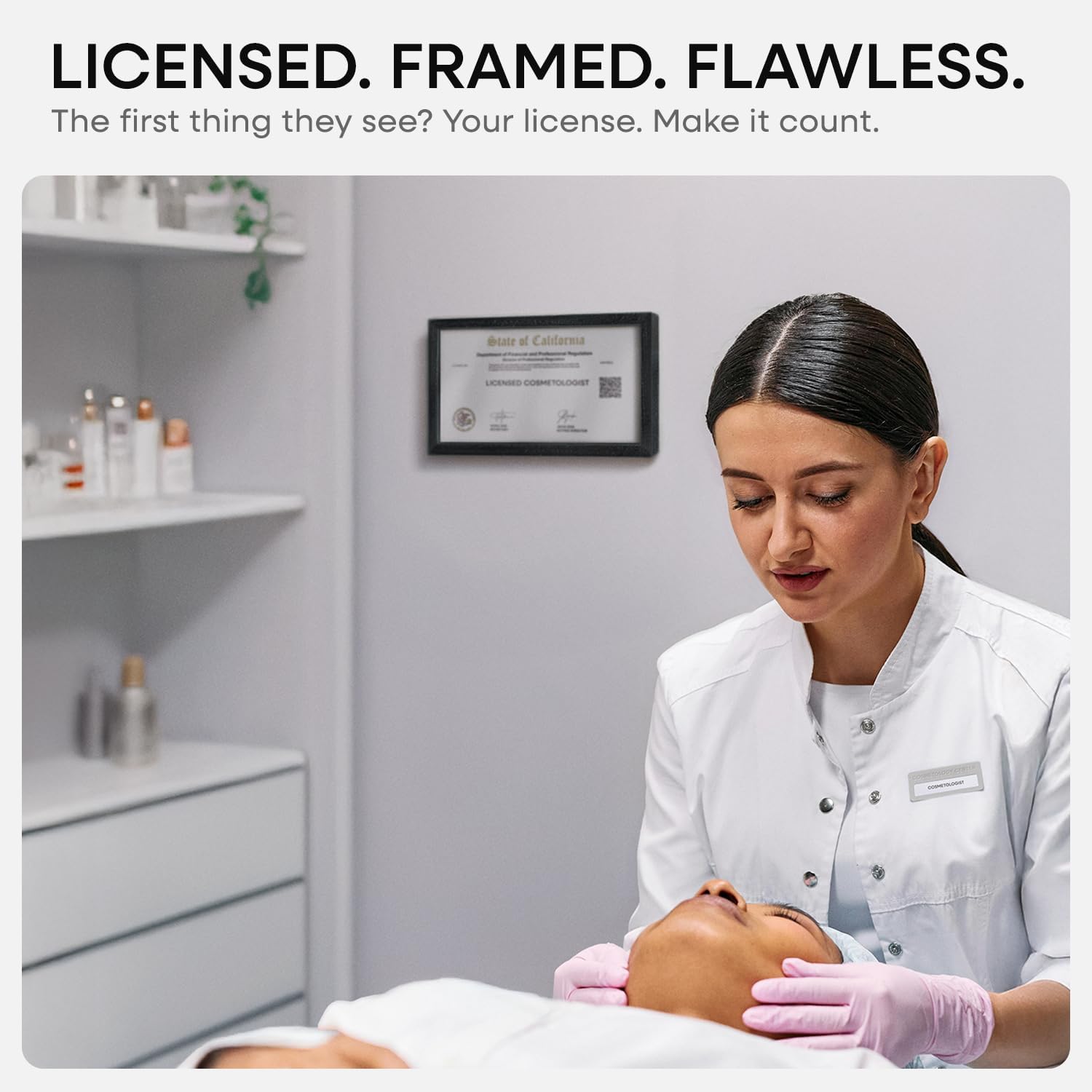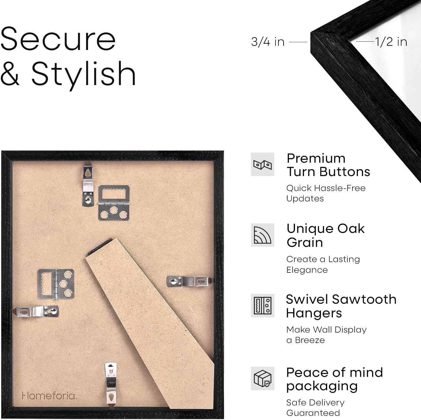 Homeforia 5x10 Business License Frame Black, High End Oak 5 x 10 Black Wood Document Certificate Frame with Mat 4x9, 10x5 Wooden Picture Frames for Wall or Tabletop, Tempered Glass, Wall Kit, Set of 1