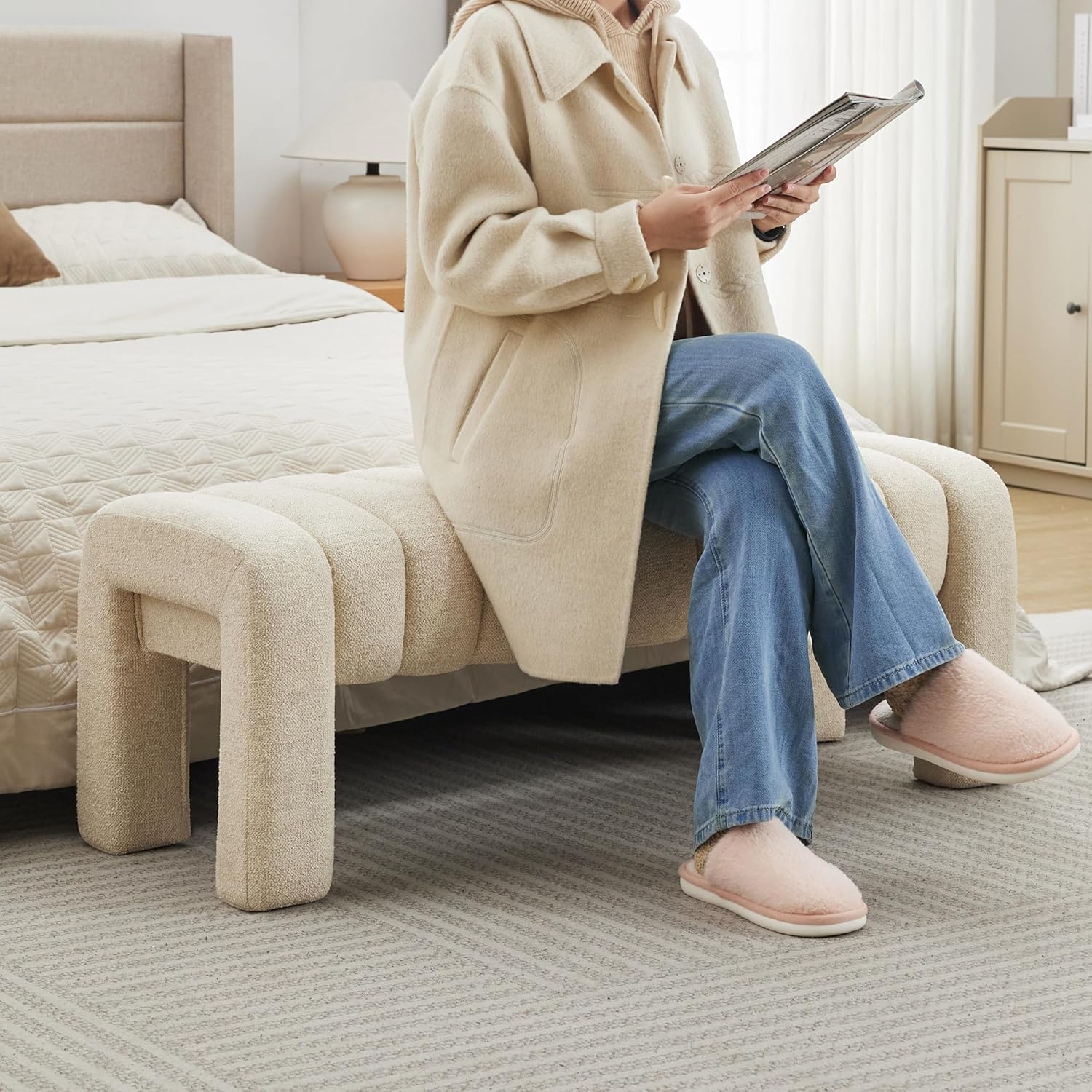 - 【Stylish and Comfortable Design】 The Scingu End of Bed Bench features a contemporary design with soft fabric that adds a touch of elegance to any room, blends well with a wide range of home styles, and easily matches your existing furnishings to help you create a comfortable, stylish living environment. Suitable for the bedroom, living room or entryway, this bench enhances your décor while providing a practical seating option