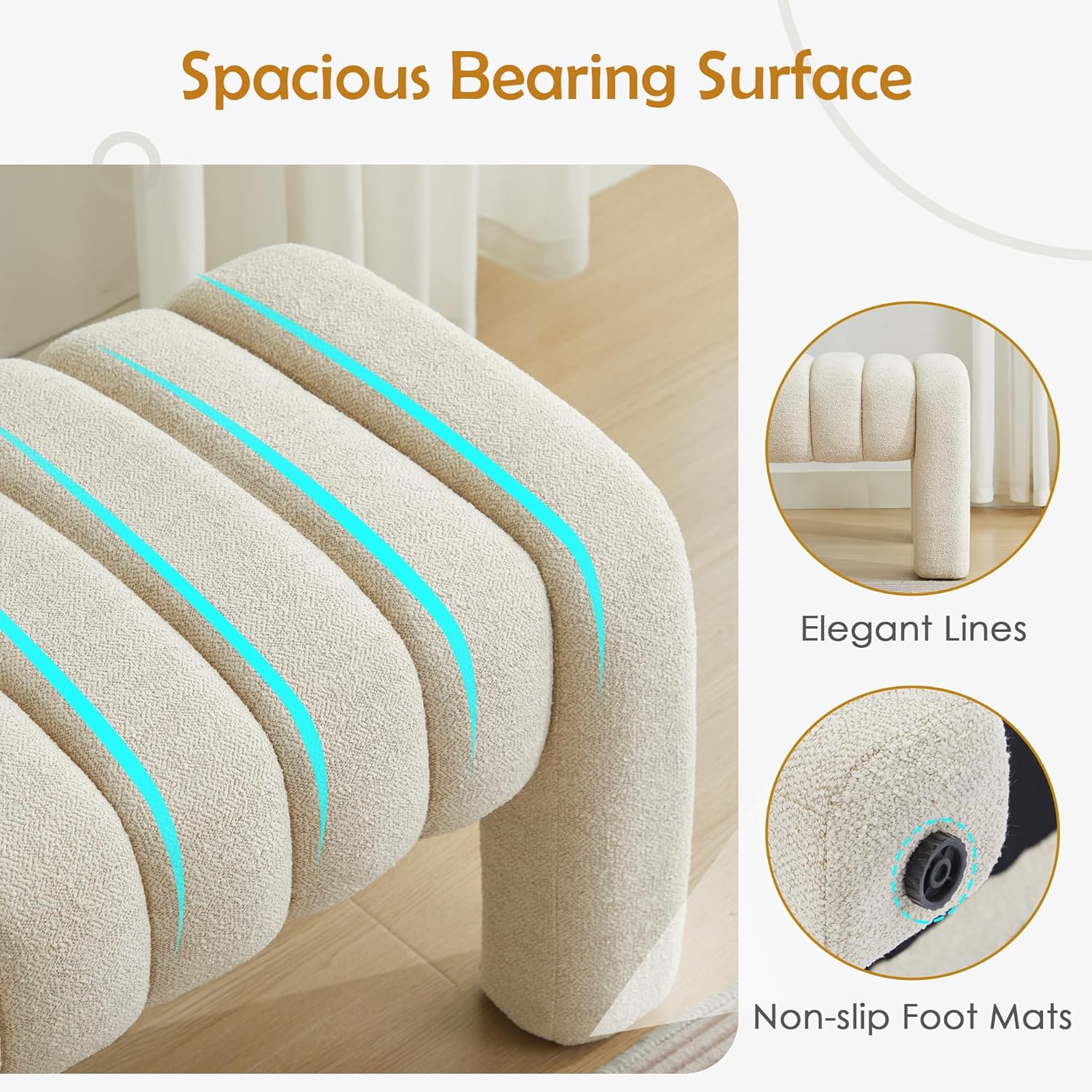 - 【Comfortable Experience】 This bedroom bench is made of delicate fabric and filled with high-density foam, providing excellent sitting feeling and comfort, allowing you to sit down or rest your feet after a busy day. Equipped with four adjustable foot pegs to ensure that the bench is stable and not wobbly during use, protect your floor from scratches and bring you a safer experience