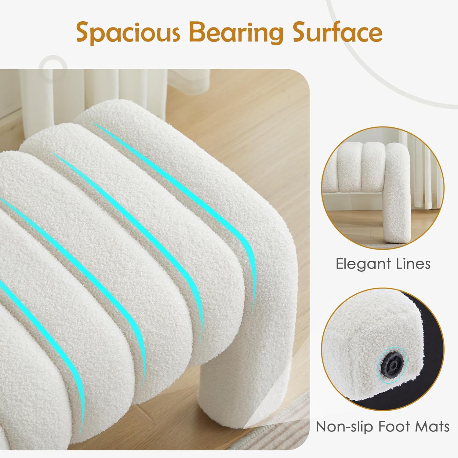 - 【Comfortable Experience】 This bench is made of delicate fabric and filled with high-density foam, providing excellent sitting feeling and comfort, allowing you to sit down or rest your feet after a busy day. Equipped with four adjustable foot pegs to ensure that the bench is stable and not wobbly during use, protect your floor from scratches and bring you a safer experience
