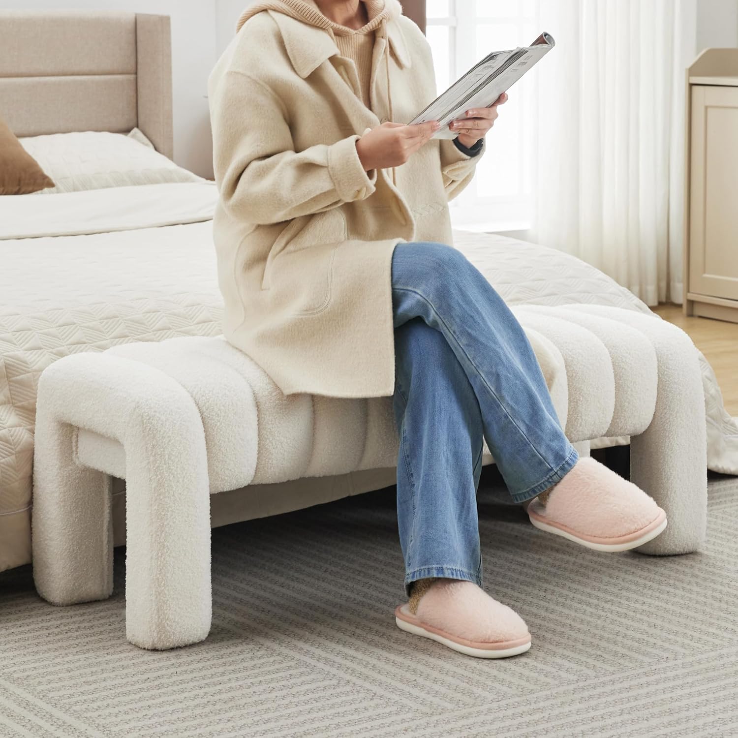 - 【Stylish and Comfortable Design】 The Scingu End of Bed Bench features a contemporary design with soft fabric that adds a touch of elegance to any room, blends well with a wide range of home styles, and easily matches your existing furnishings to help you create a comfortable, stylish living environment. Suitable for the bedroom, living room or entryway, this bench enhances your décor while providing a practical seating option