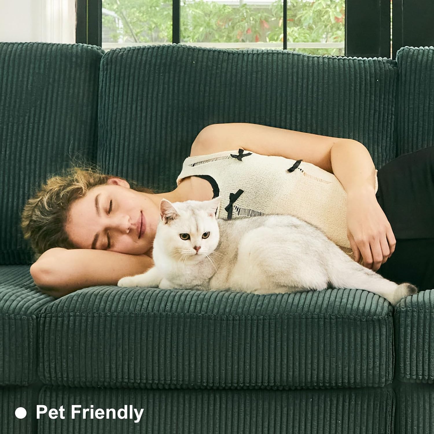 - Durable and Pet-Resistant Design: The sofa's corduroy material is both attractive and robust, making it an ideal choice for pet owners. It's resistant to pet damage and simple to maintain, with pet hair easily removed using a lint roller.