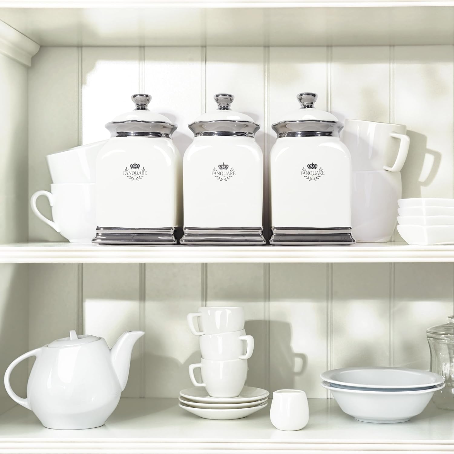 fanquare 30 OZ Cookie Jar, White Kitchen Canisters Set of 3, Farmhouse Porcelain Decorative Jars for Countertop, Ceramic Storage Jar for Coffee, Sugar, Tea Bag