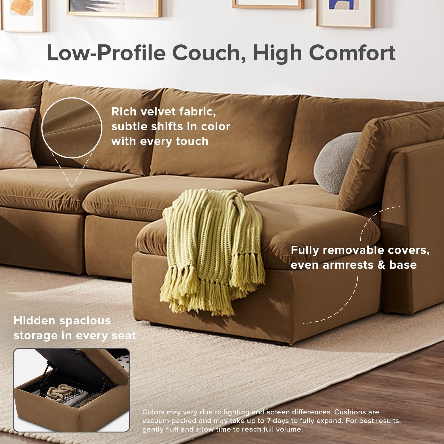 mopio Oversized Modular Sectional Sofa with Fully Removable Covers and Storage, Convertible U, L-Shaped and Sleeper Sectional, Modern Couches with Ottoman Chaise (Hazelnut Velvet, 9 Seats, Sleeper)