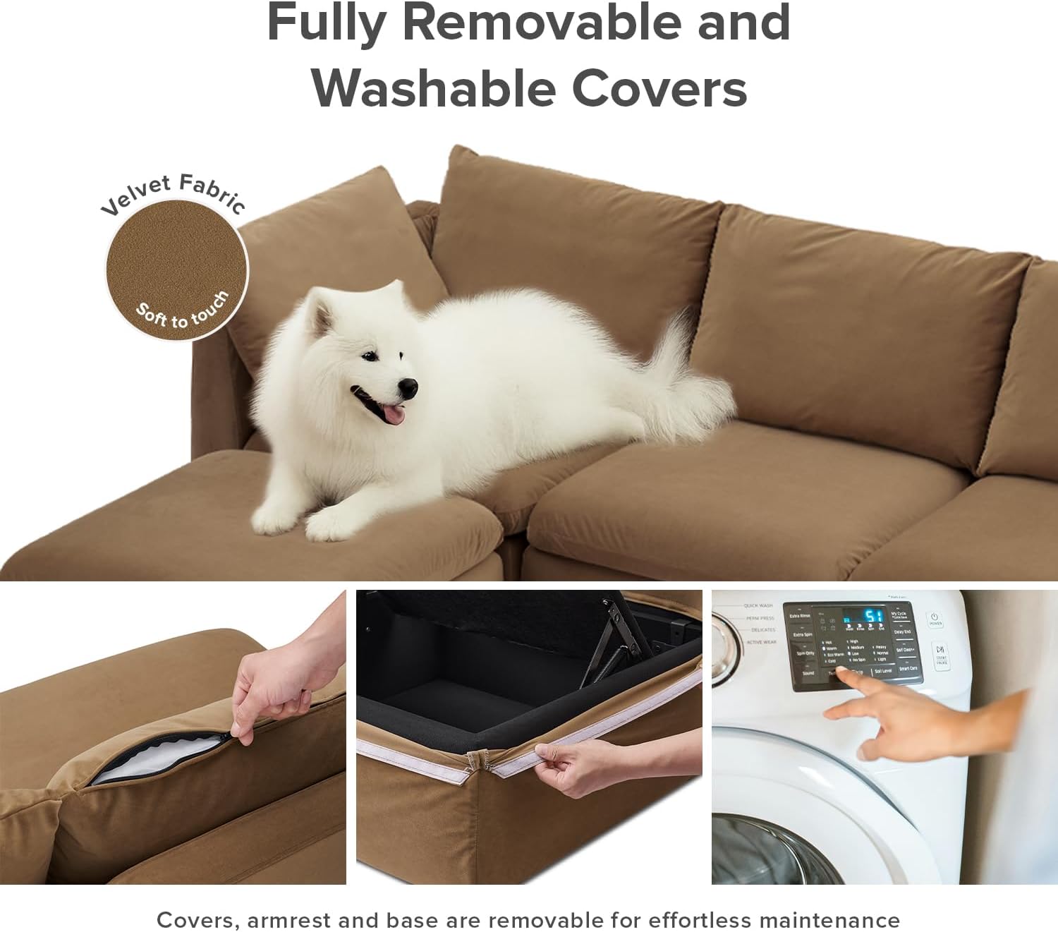 - Fully Removable & Washable Covers for Easy Care: Designed to keep up with real life, all covers, including the armrests and base, are fully removable and machine washable. Whether youâve got kids, pets, or just the occasional spill, this sofa is easy to keep fresh and clean
