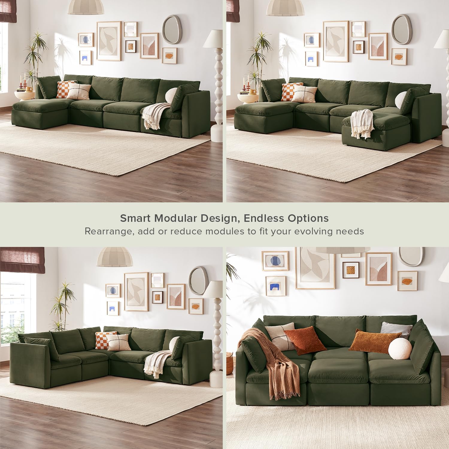 mopio Oversized Modular Sectional Sofa with Fully Removable Covers and Storage, Convertible U, L-Shaped and Sleeper Sectional, Modern Couches with Ottoman Chaise (Olive Green Velvet, 5 Seats, L)