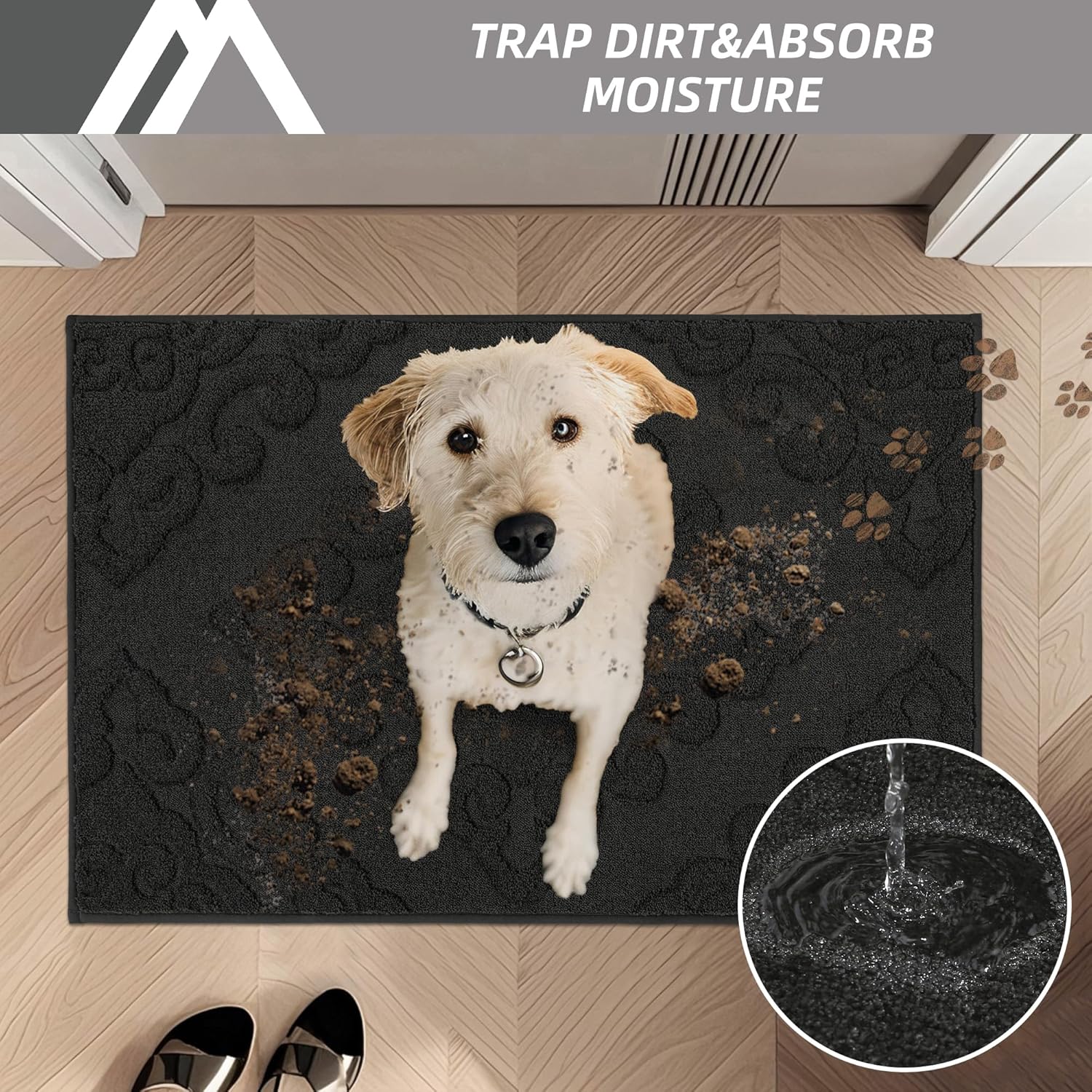 - TRAP DIRT & LOW PILE:Premium Polyester fibers and extremely dense yarns effectively absorb moisture and scrape dirt off shoes.Our dirt-trapping entry mat can keep home clean and dry quickly.A 0.45” low-pile allows the door to open easily over it without jamming or curling.Note:Please confirm the mat size and height of the door gap before purchasing