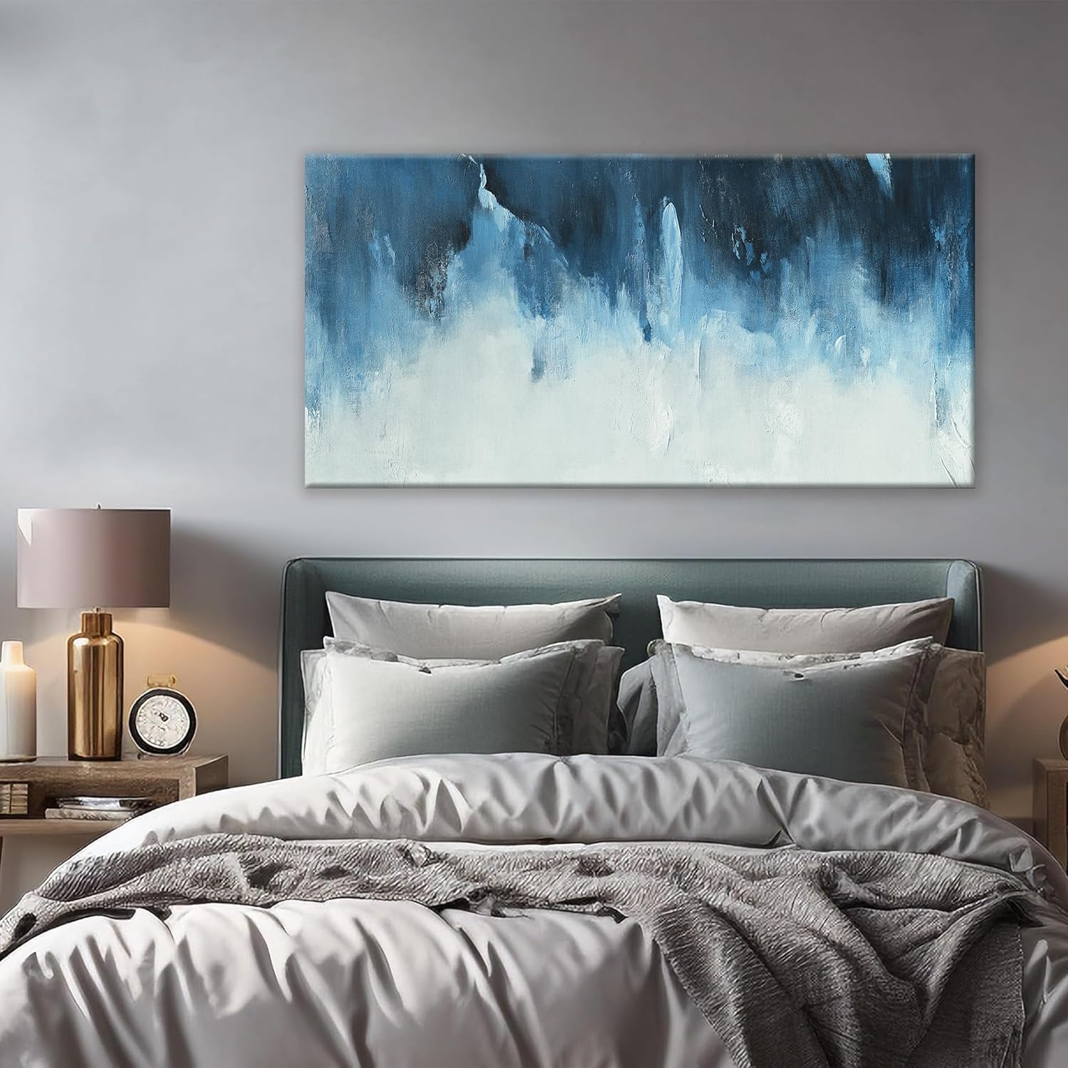 Canvas Wall Art Decor White Blue Wall Art Decor Abstract Art Decoration Pictures For Living Room Art Work Modern Abstract Wall Art Paiintings Prints for Home Bedroom Office Room Wall Decor 24" x 48"