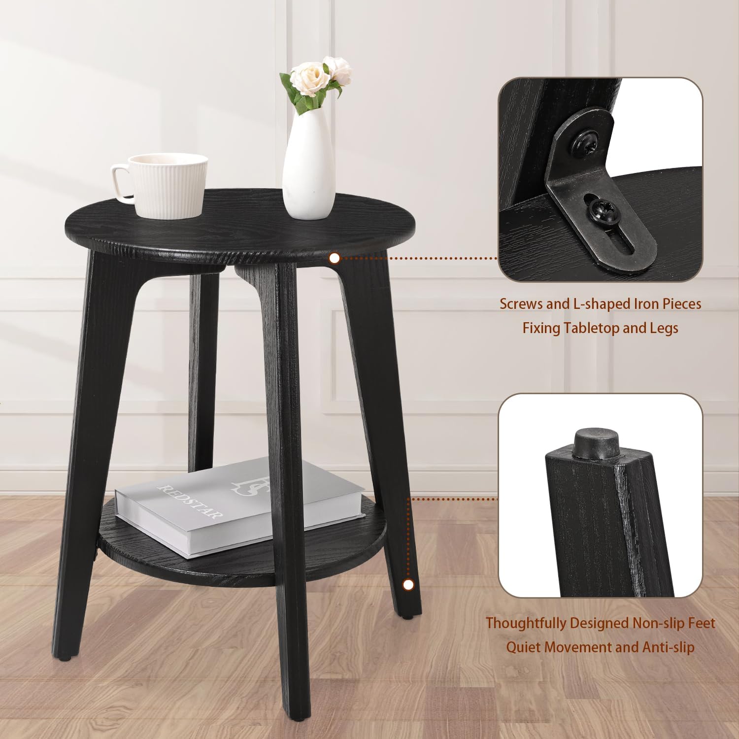 Side End Table Round Black Beside Table Sofa Table Nightstand Modern End Table 2-Tier Small Accent Tables Great for Small Spaces Living Room Bedroom