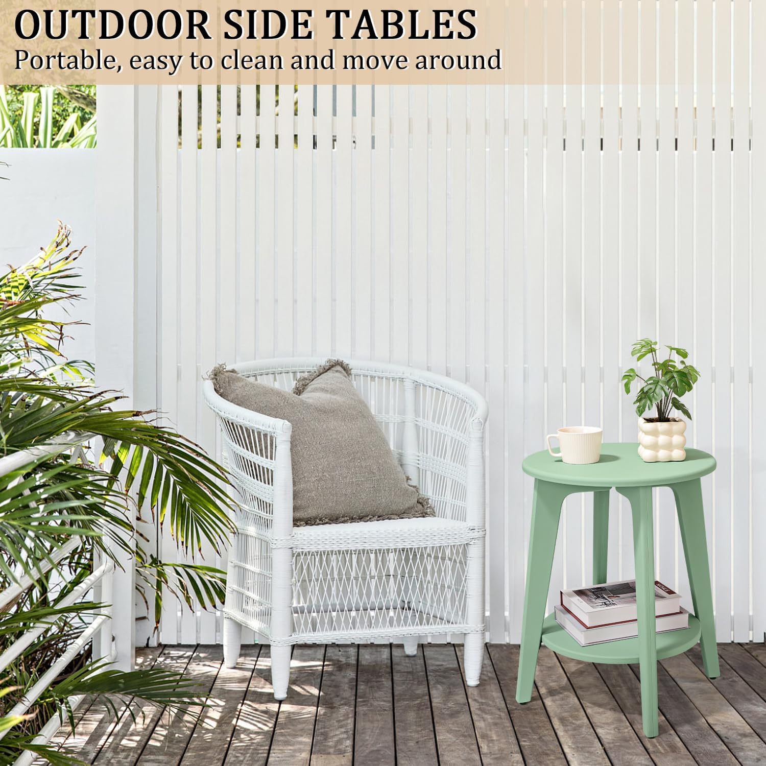 Round Side Table Green Wooden End Table with Lower Shelf Rustic Vintage Nightstand Beside Table for Living Room Bedroom Small Spaces