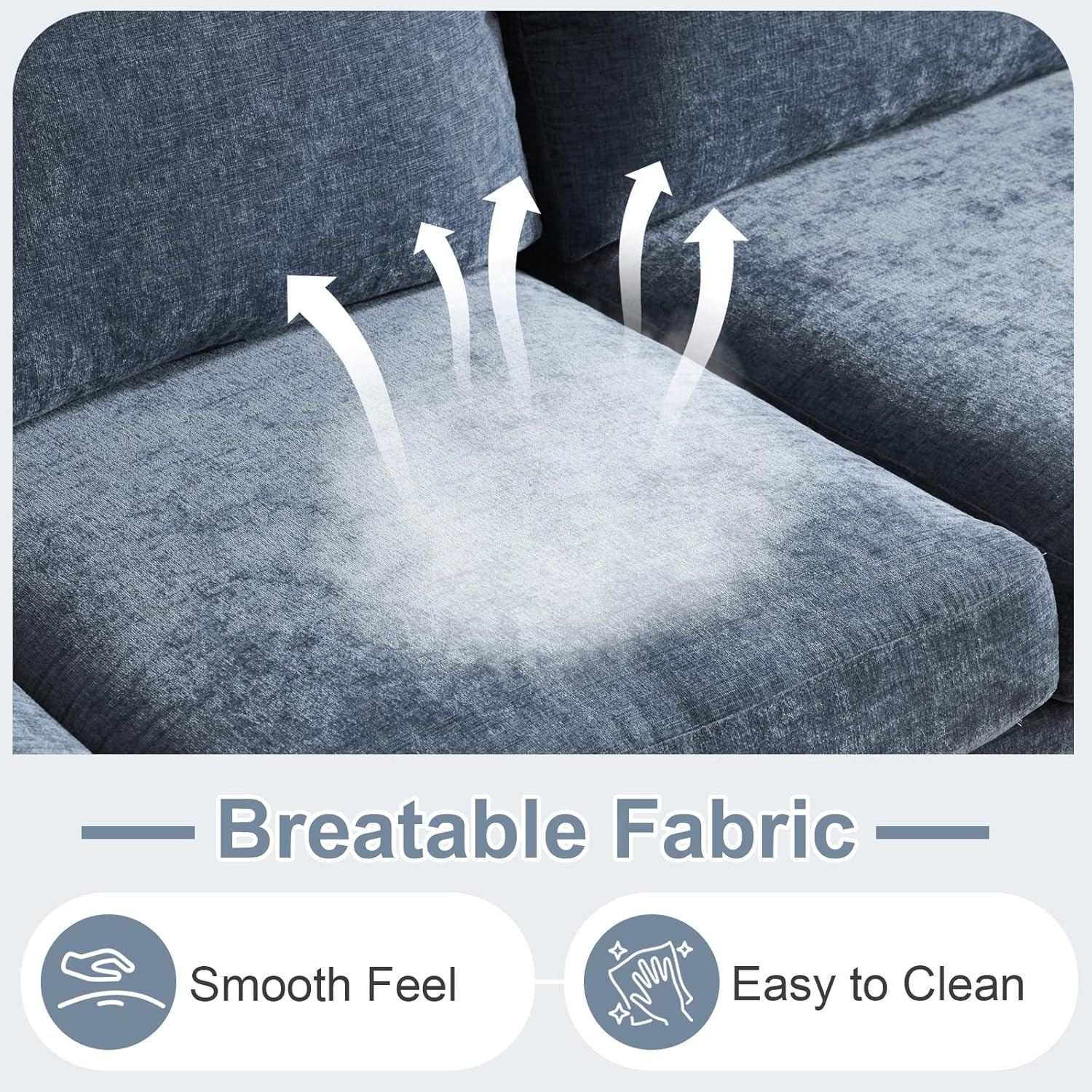 - SOFT & COMFORTABLE - When seated on the couch, you will experience the support of the high-resilience sponge in the seat and back. Occasionally, you can take a nap on the chaise. Covered with breathable fabric, this four-seat sofa offers physical and mental comfort.