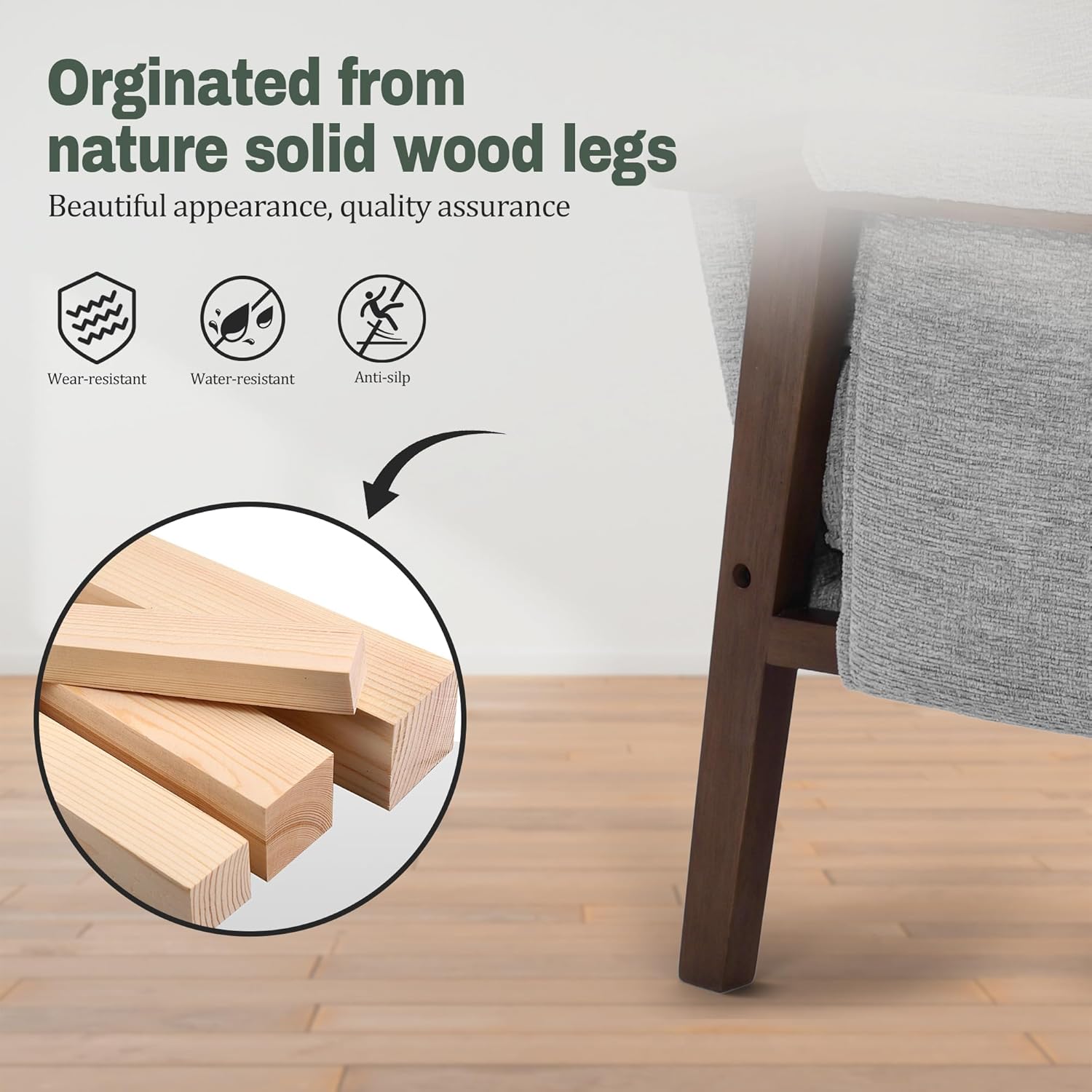 - Please Your Eyes - Designed in a unique mid-century modern style, the curved armrests provide a unique and stylish look, while the solid wood frame and linen fabric add a modern touch. With a sleek and modern design that incorporates retro elements, this accent chair will add a touch of sophistication to any room