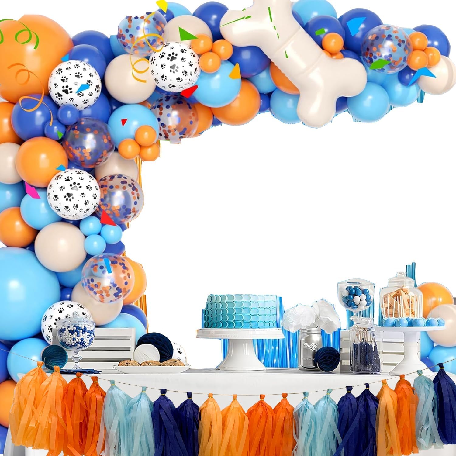 Blue and Orange Tissue Paper Tassel Garland,Tissue Tassel Banner for Party Decorations,Pack of 20