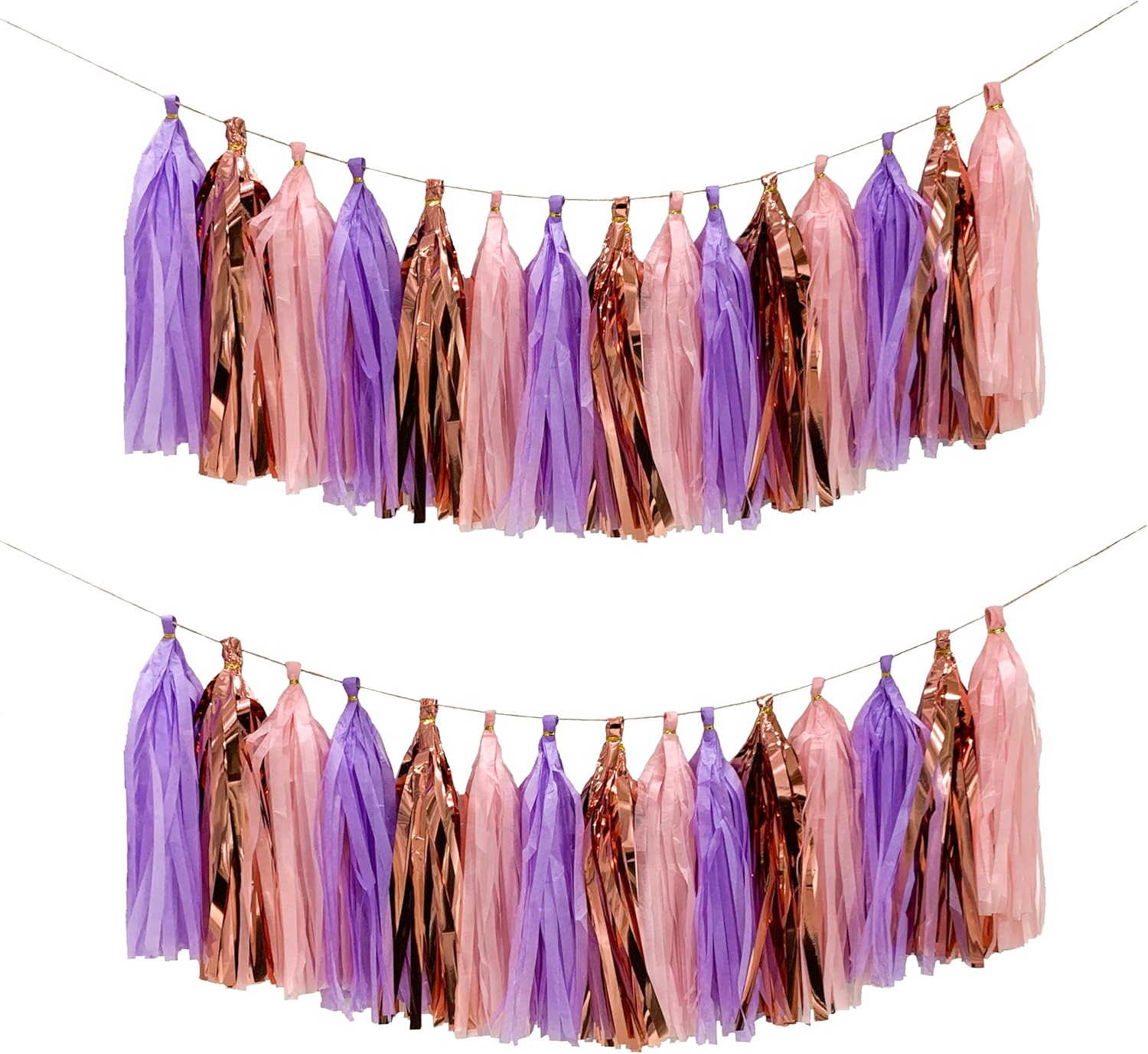 Pink Purple Rose Gold Tissue Paper Tassel Garland,Tissue Tassel Banner for Party Decorations,Pack of 15