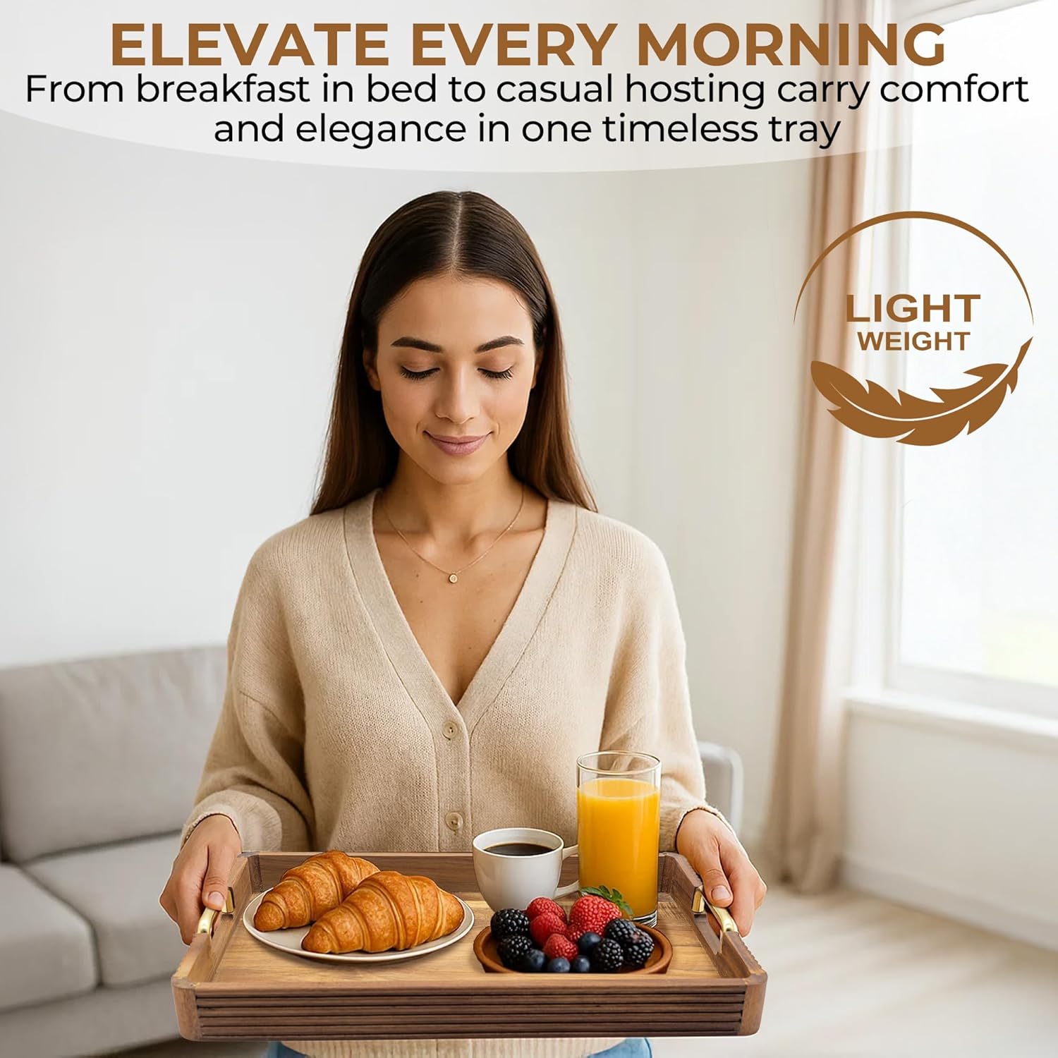 - Versatile Serving & Display Transforms from a breakfast‑in‑bed tray to a coffee‑table centerpiece or ottoman organizer—streamline entertaining and styling with one elegant piece.