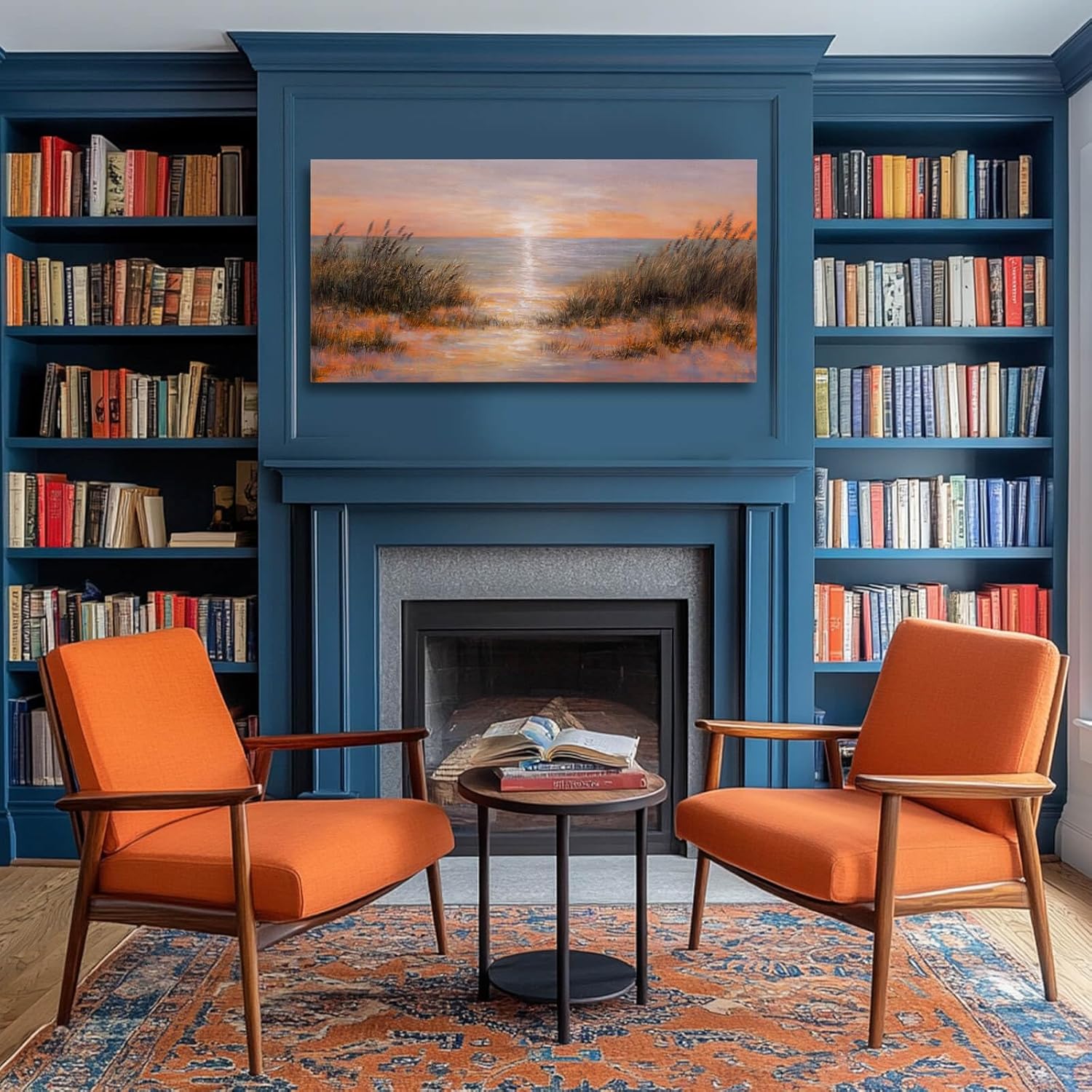 Coastal Wall Art Colorful Scenery Artwork Orange Sunset Wall Decorations for Living Room 24"x48" Nature Photo Prints for Bedroom Dining Room