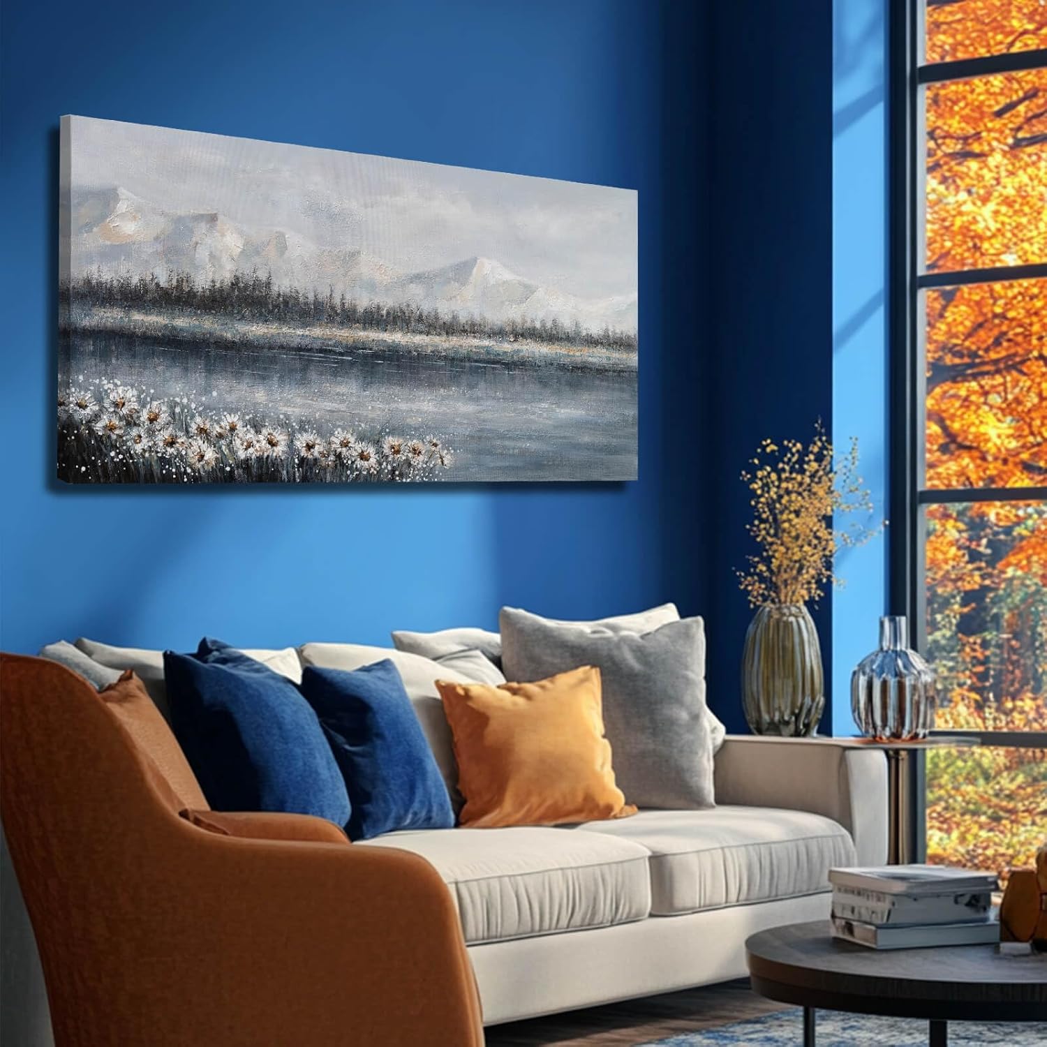 CHUDANHAO Large Wall Art Abstract Wall Decor Floral Arts Mountain Modern Artwork White Poster Pictures for Girls Women Room 24"x48"