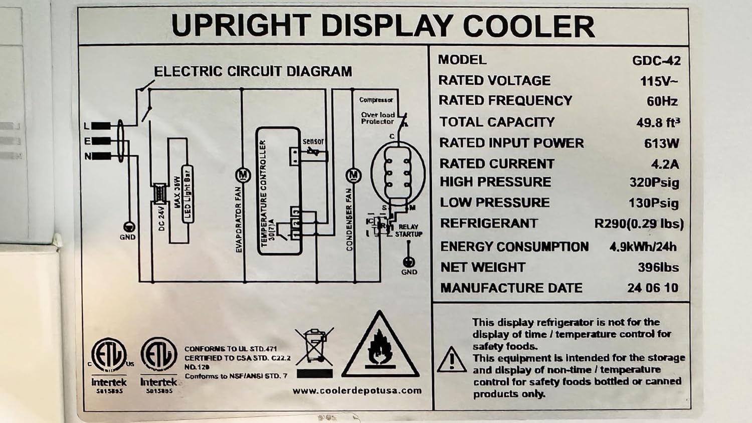 - TECHNICAL SPECS: Operates at 115V/60Hz with 613W rated input power, maintaining temperatures between 0°C~10°C (32°F-50°F) Note: our warranty does not cover all equipment used in food trucks, trailers, boats, residential addresses, islands, or built-in decorations.
